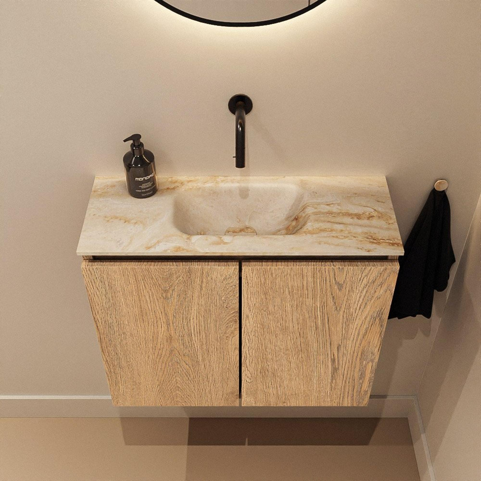 MONDIAZ TURE-DLUX 60cm toiletmeubel Washed Oak. EDEN wastafel Frappe positie midden. Zonder kraangat.