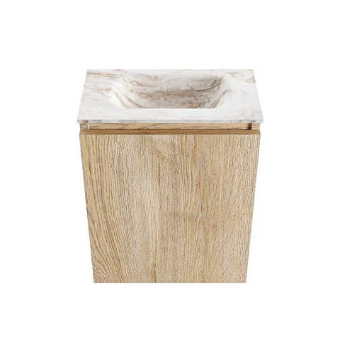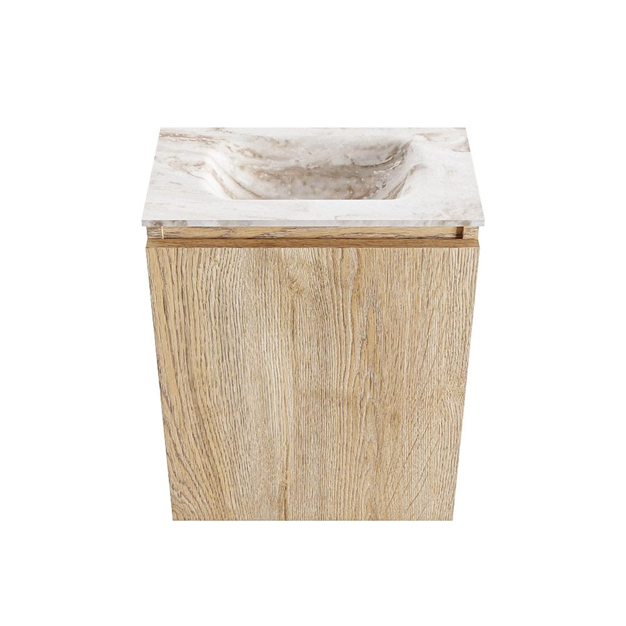 MONDIAZ TURE-DLUX 40cm toiletmeubel Washed Oak. EDEN wastafel Frappe positie midden. Zonder kraangat.