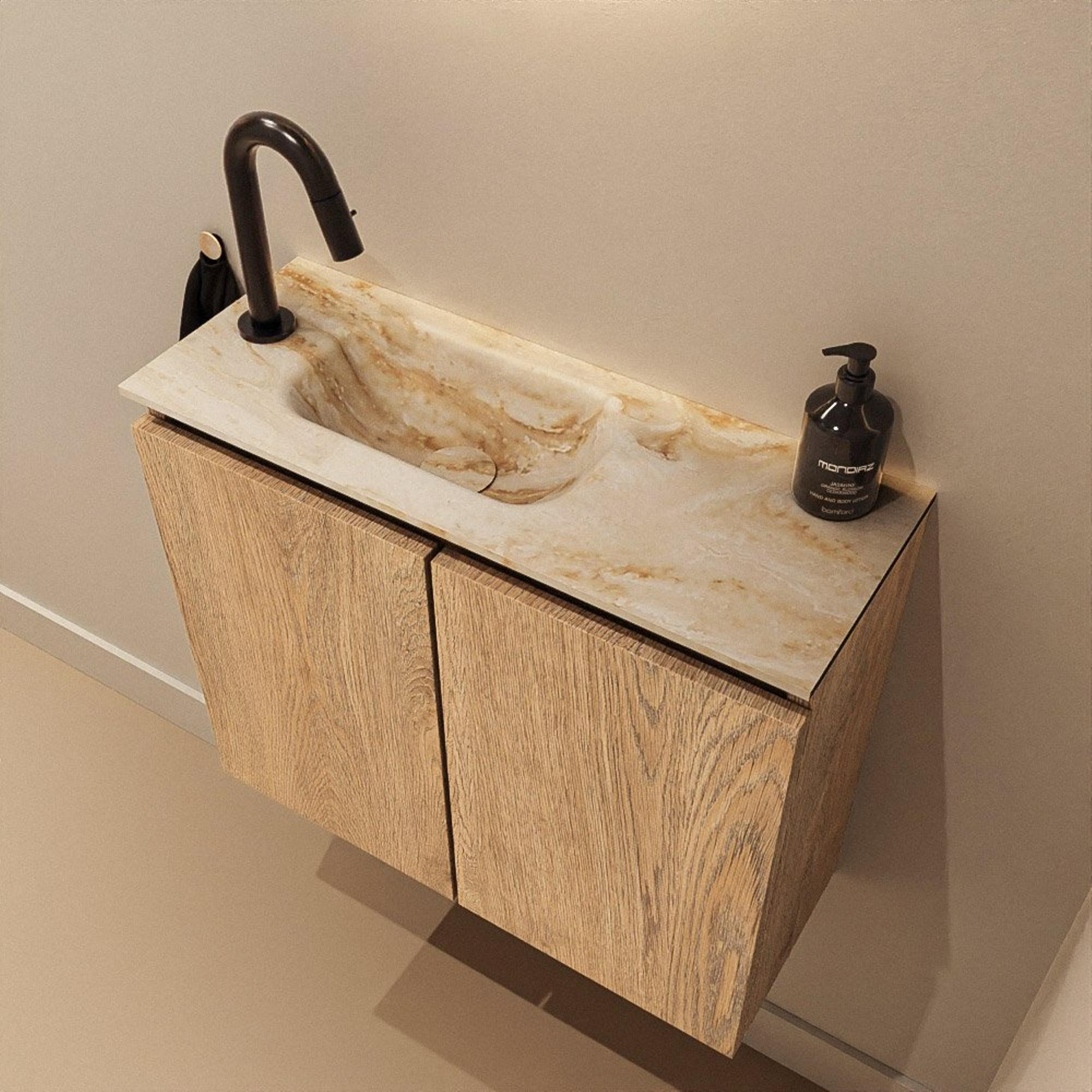 MONDIAZ TURE-DLUX 60cm toiletmeubel Washed Oak. EDEN wastafel Frappe positie links. Met 1 kraangat.