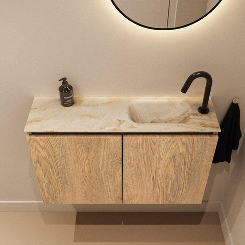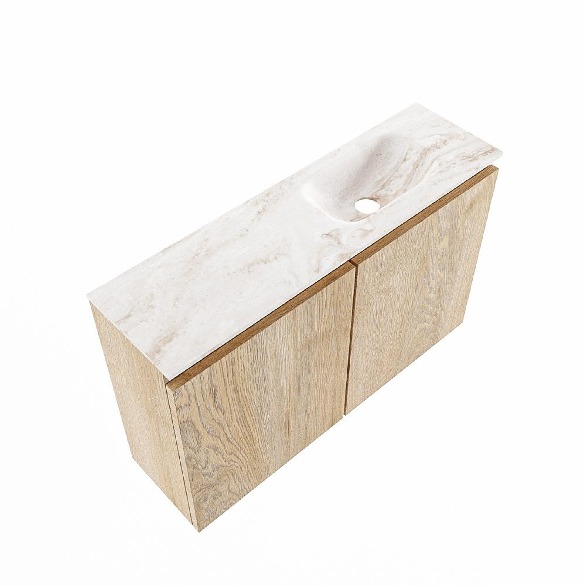 MONDIAZ TURE-DLUX 80cm toiletmeubel Washed Oak. EDEN wastafel Frappe positie rechts. Met 1 kraangat.