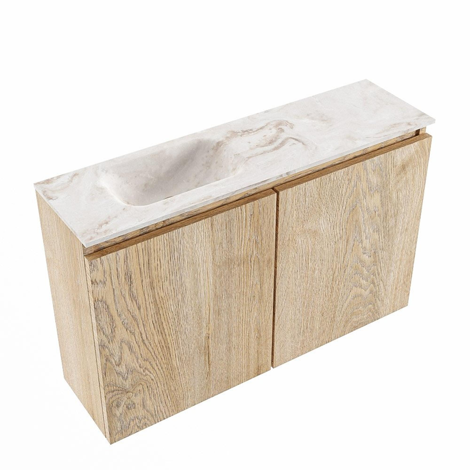 MONDIAZ TURE-DLUX 80cm toiletmeubel Washed Oak. EDEN wastafel Frappe positie links. Met 1 kraangat.