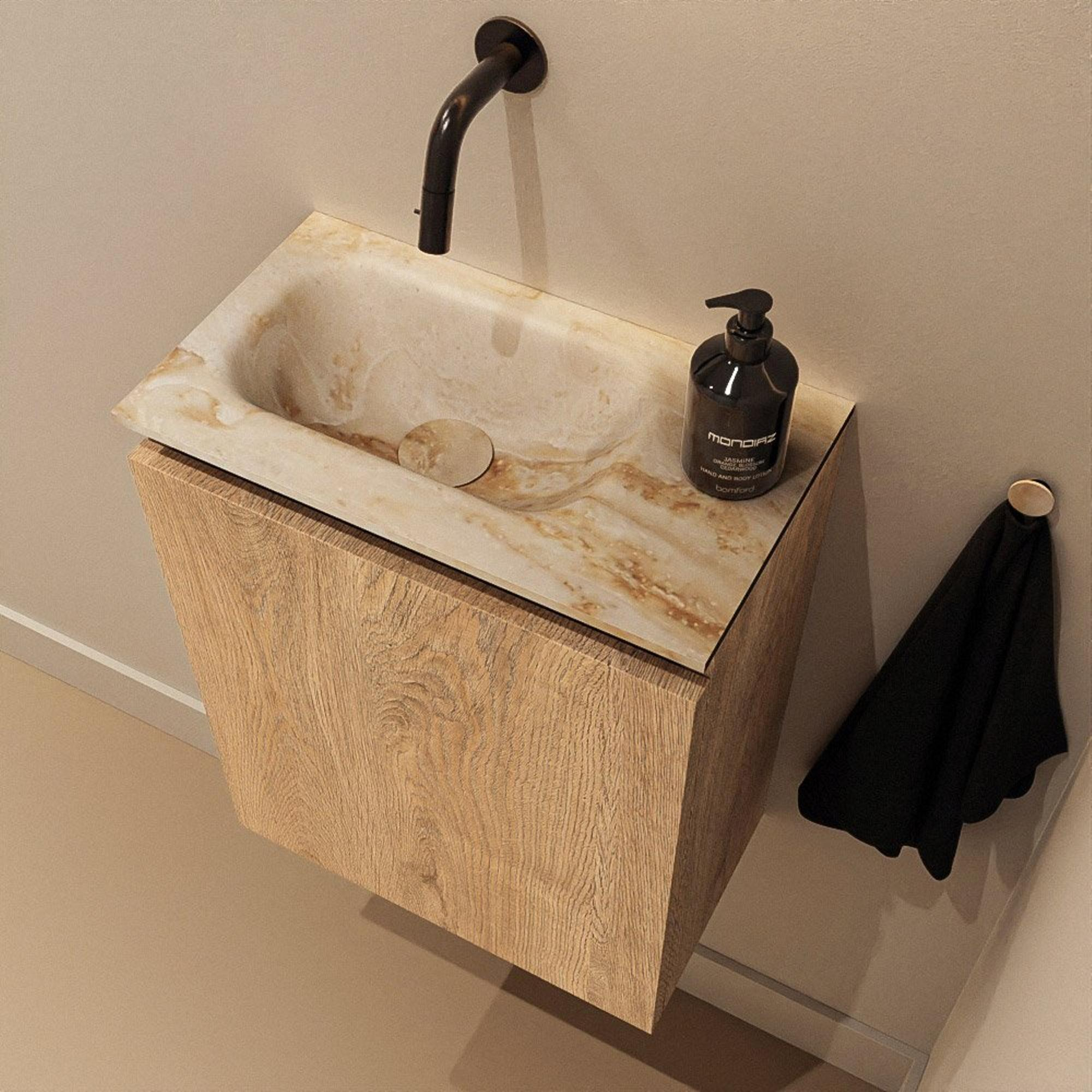 MONDIAZ TURE-DLUX 40cm toiletmeubel Washed Oak. EDEN wastafel Frappe positie links. Zonder kraangat.