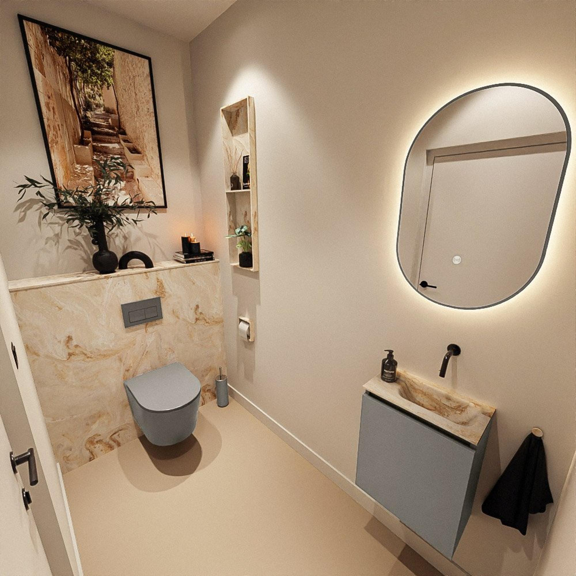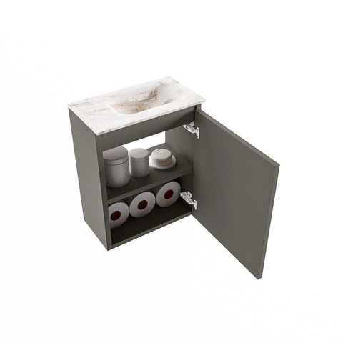 MONDIAZ TURE-DLUX 40cm toiletmeubel Smoke. EDEN wastafel Frappe positie rechts. Zonder kraangat.