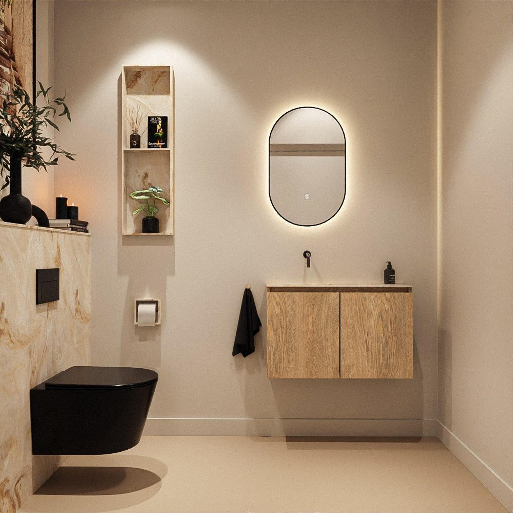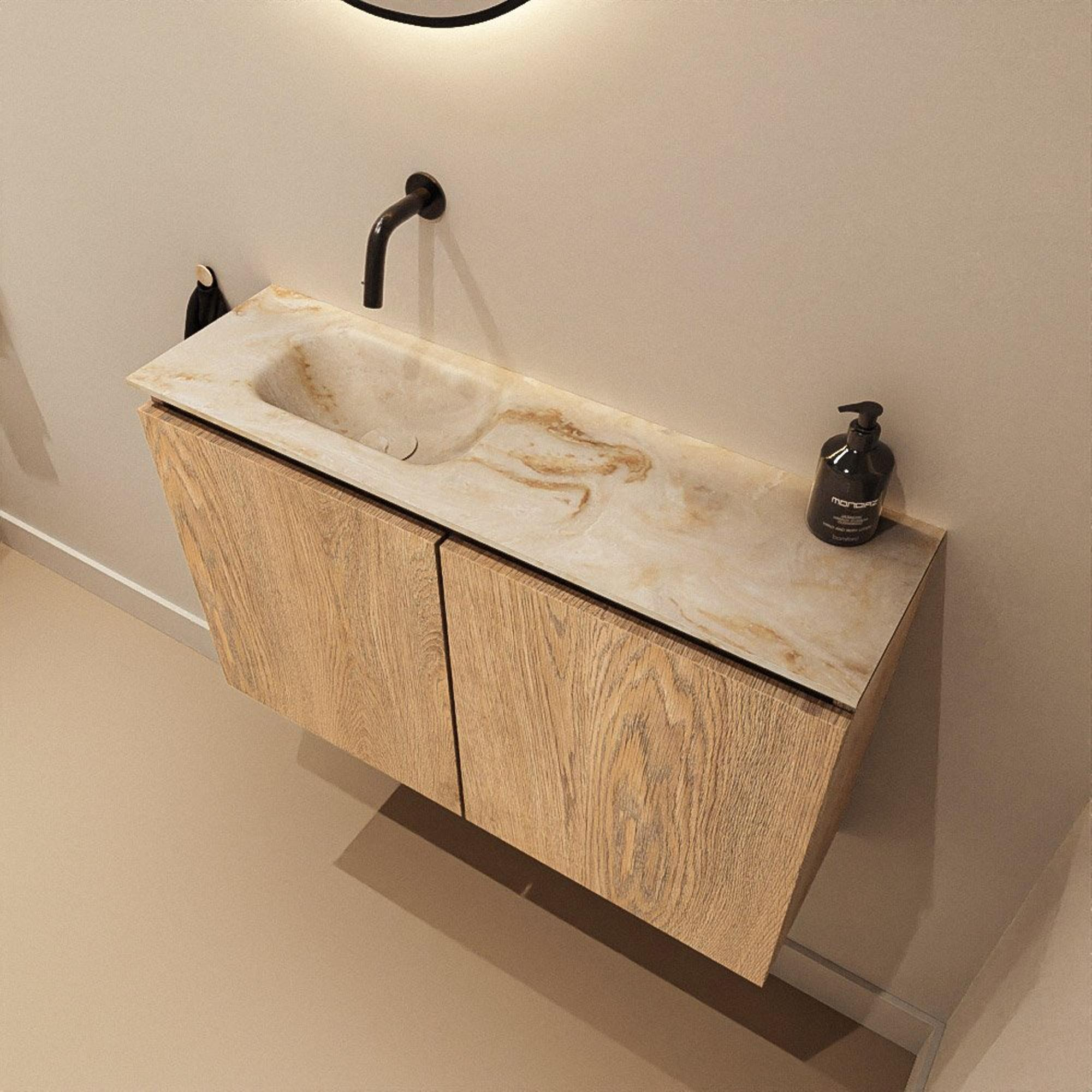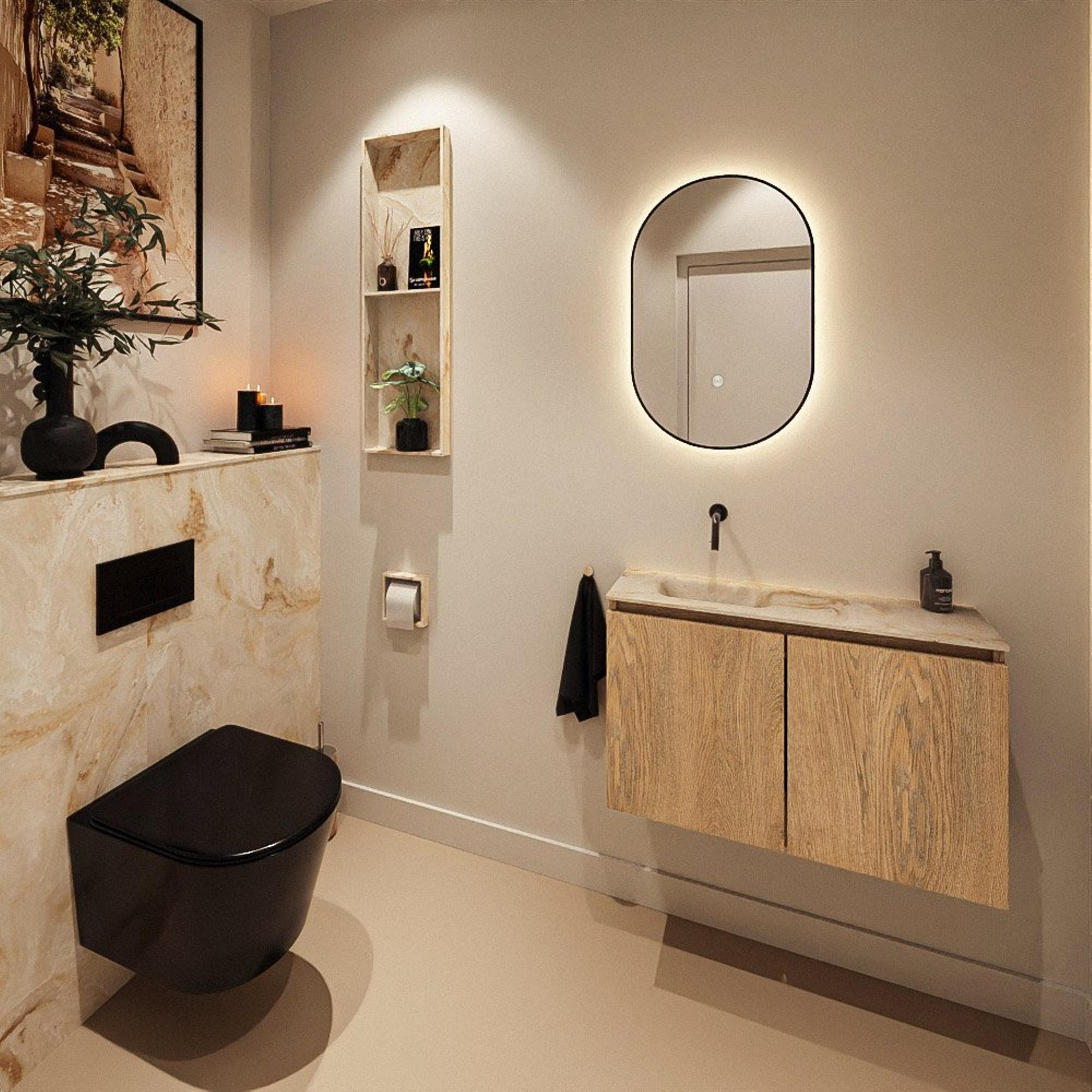 MONDIAZ TURE-DLUX 80cm toiletmeubel Washed Oak. EDEN wastafel Frappe positie links. Zonder kraangat.