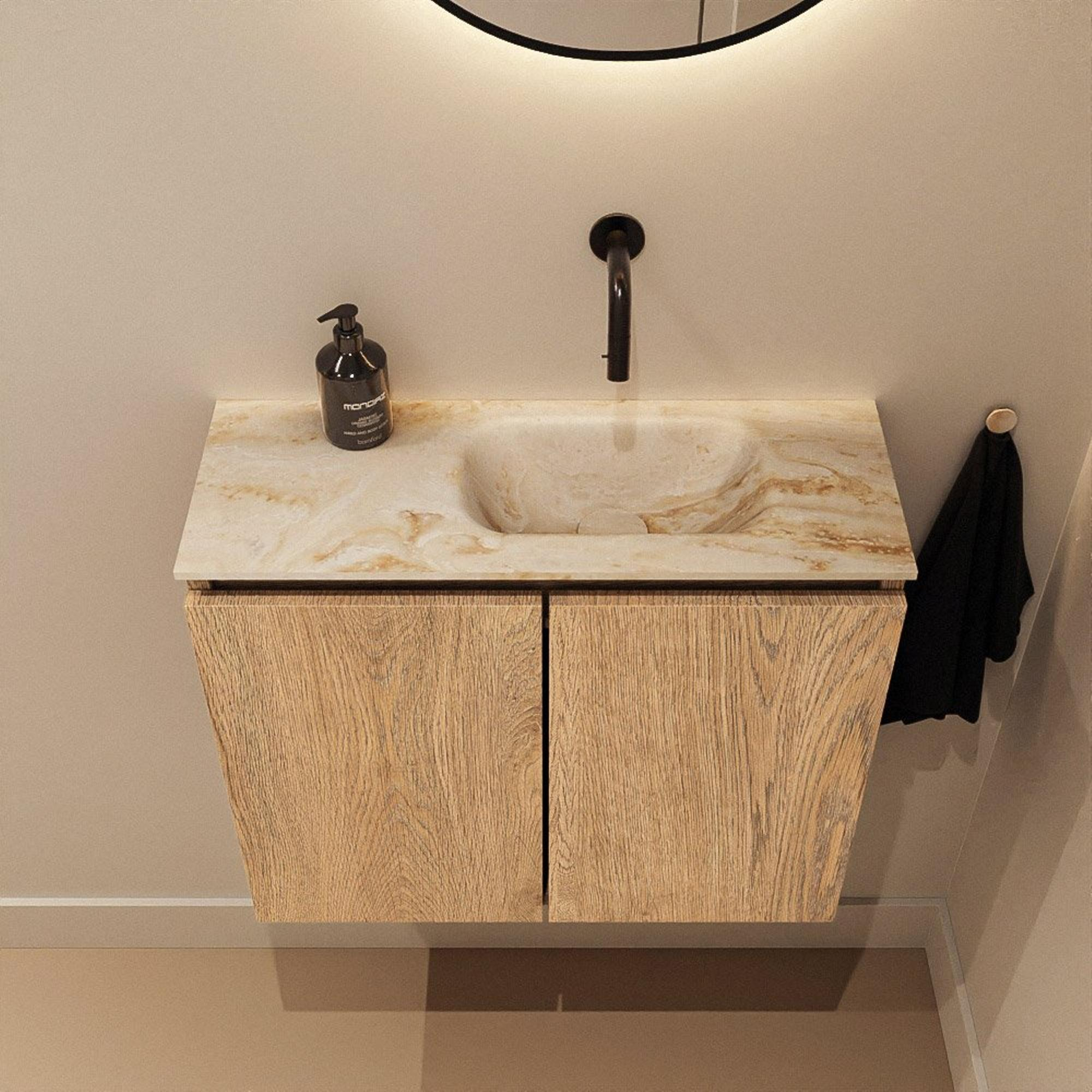 MONDIAZ TURE-DLUX 60cm toiletmeubel Washed Oak. EDEN wastafel Frappe positie rechts. Zonder kraangat.