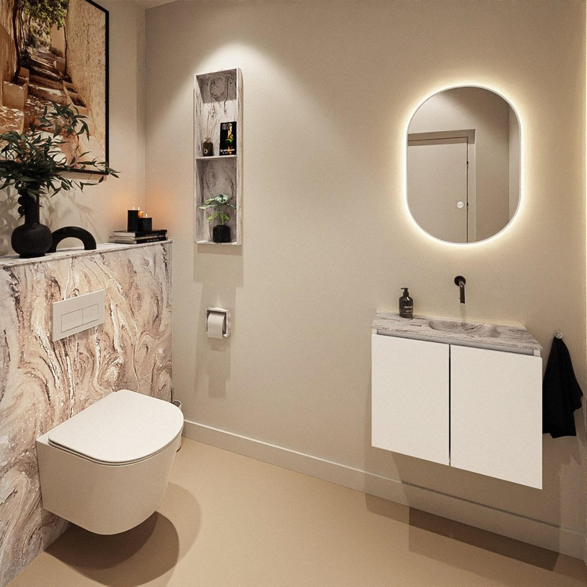 MONDIAZ TURE-DLUX 60cm toiletmeubel Talc. EDEN wastafel Glace positie rechts. Zonder kraangat.