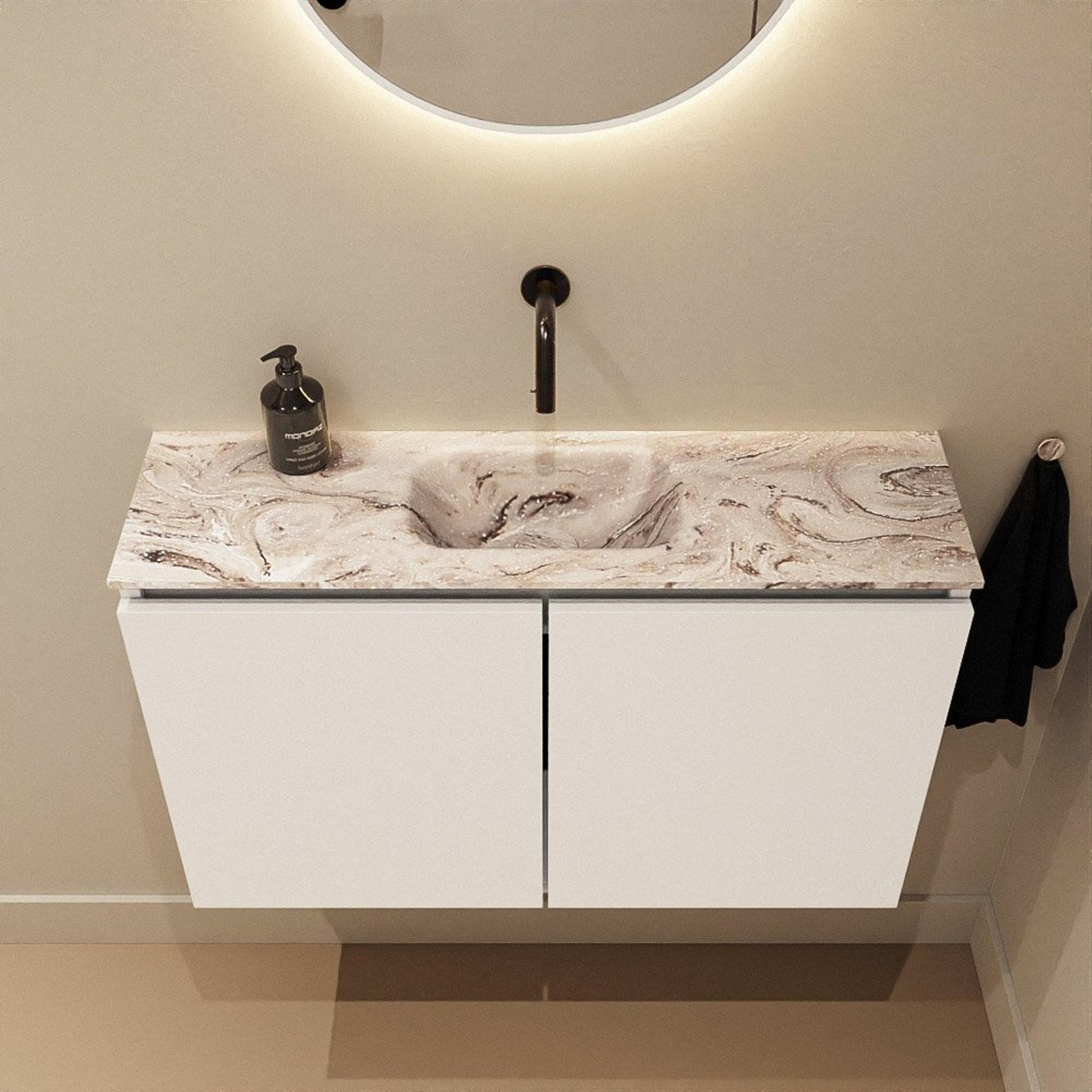 MONDIAZ TURE-DLUX 80cm toiletmeubel Talc. EDEN wastafel Glace positie midden. Zonder kraangat.