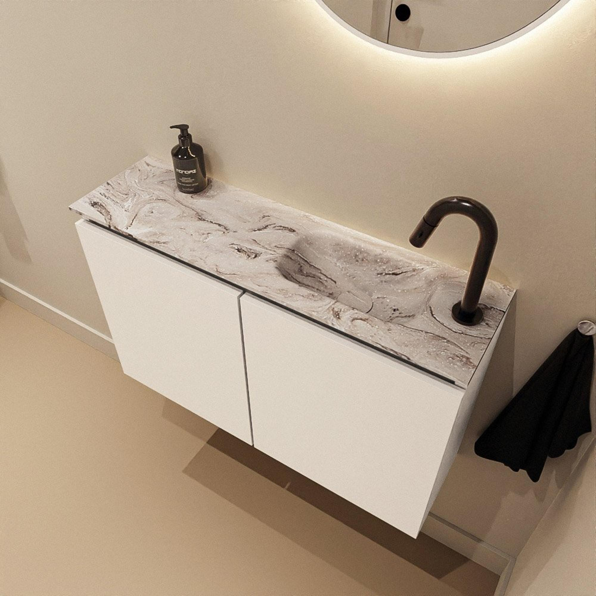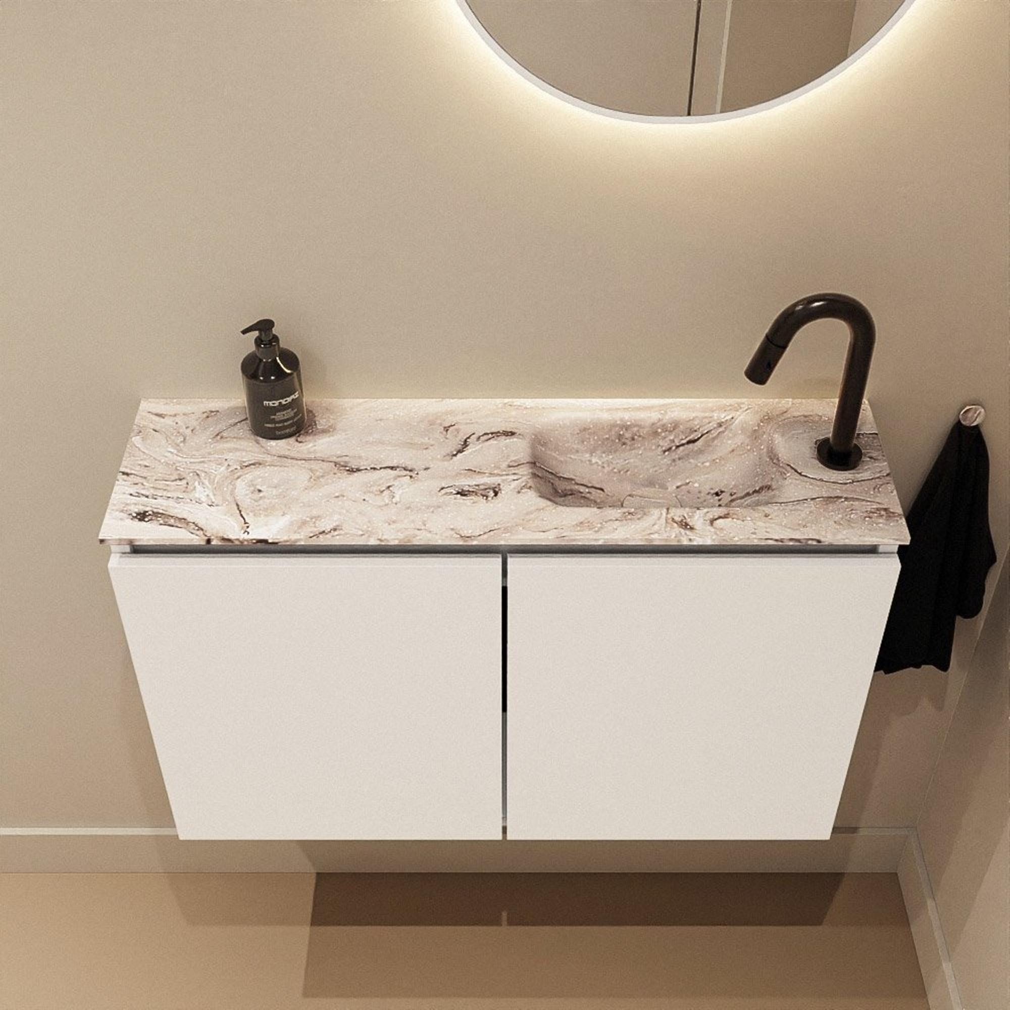 MONDIAZ TURE-DLUX 80cm toiletmeubel Talc. EDEN wastafel Glace positie rechts. Met 1 kraangat.