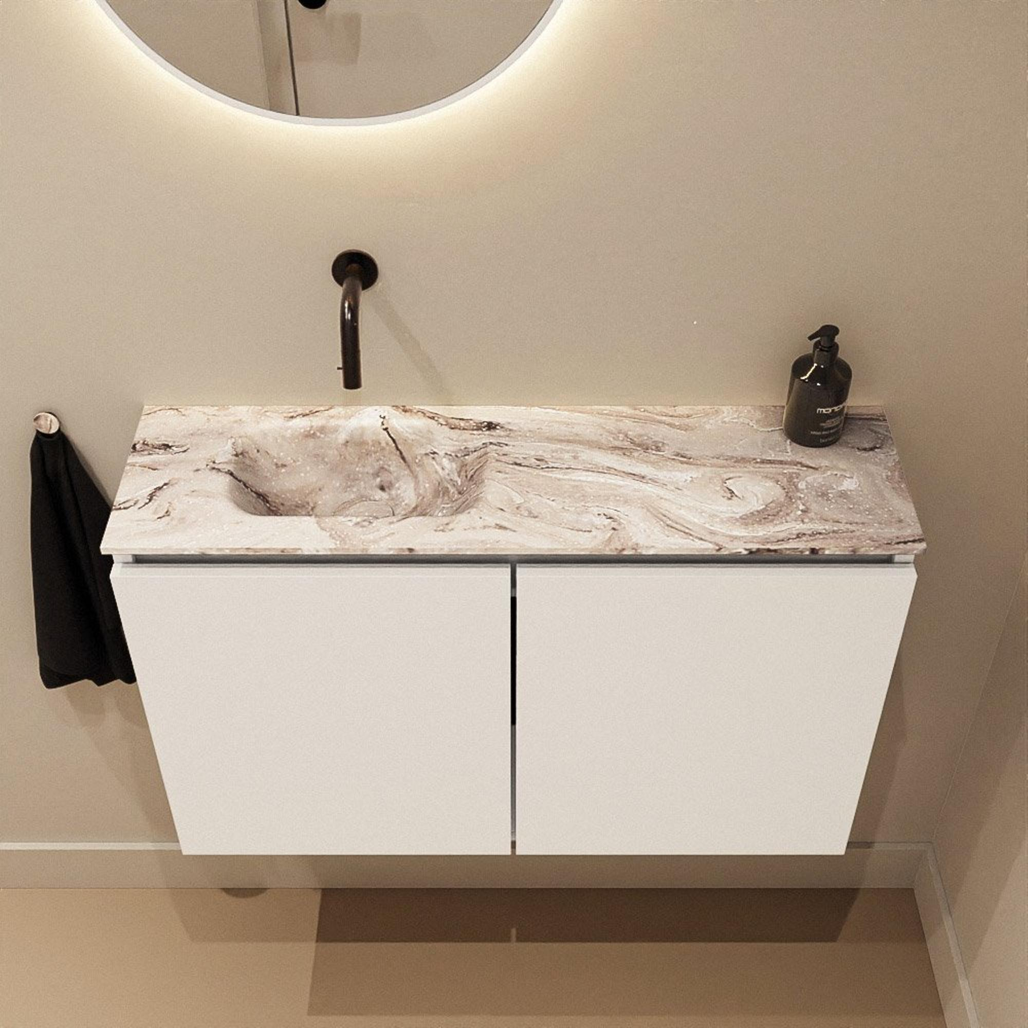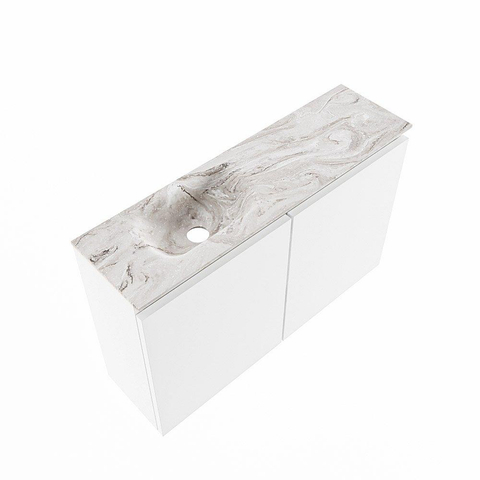 MONDIAZ TURE-DLUX 80cm toiletmeubel Talc. EDEN wastafel Glace positie links. Zonder kraangat.