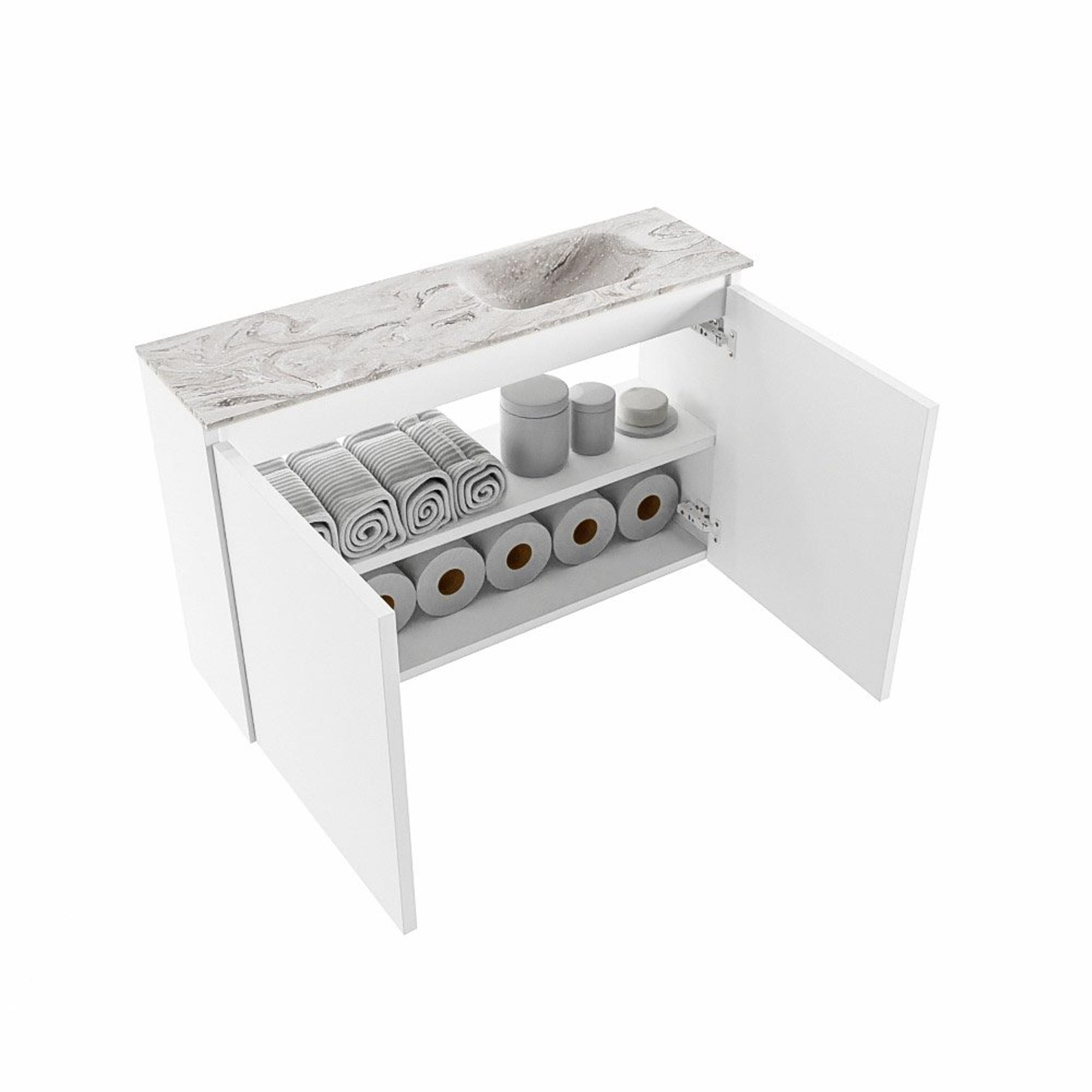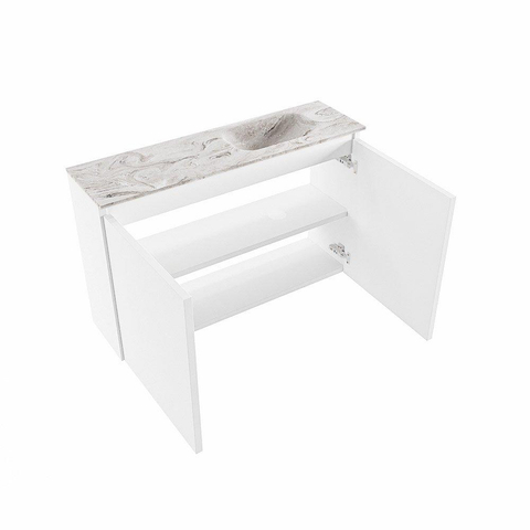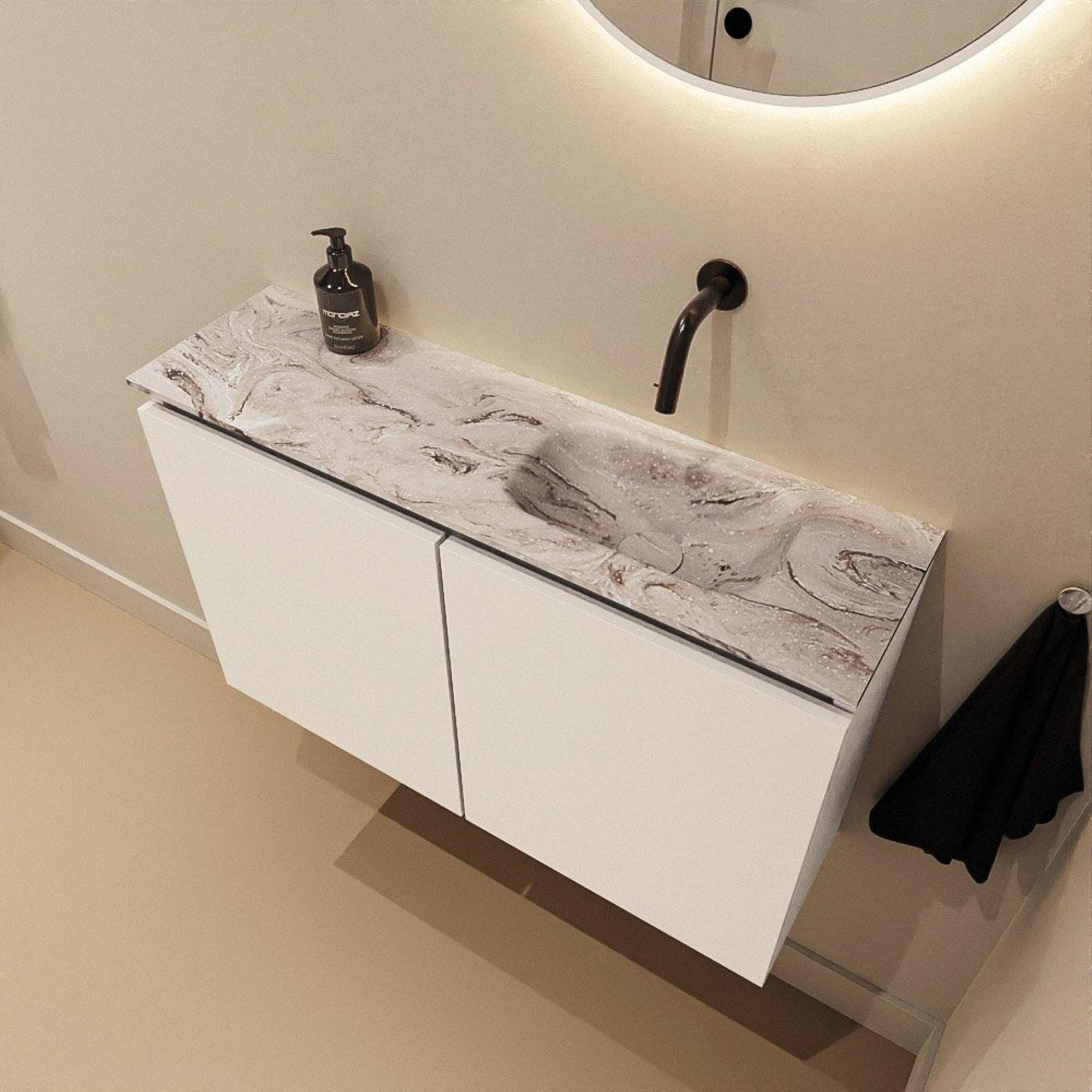 MONDIAZ TURE-DLUX 80cm toiletmeubel Talc. EDEN wastafel Glace positie rechts. Zonder kraangat.