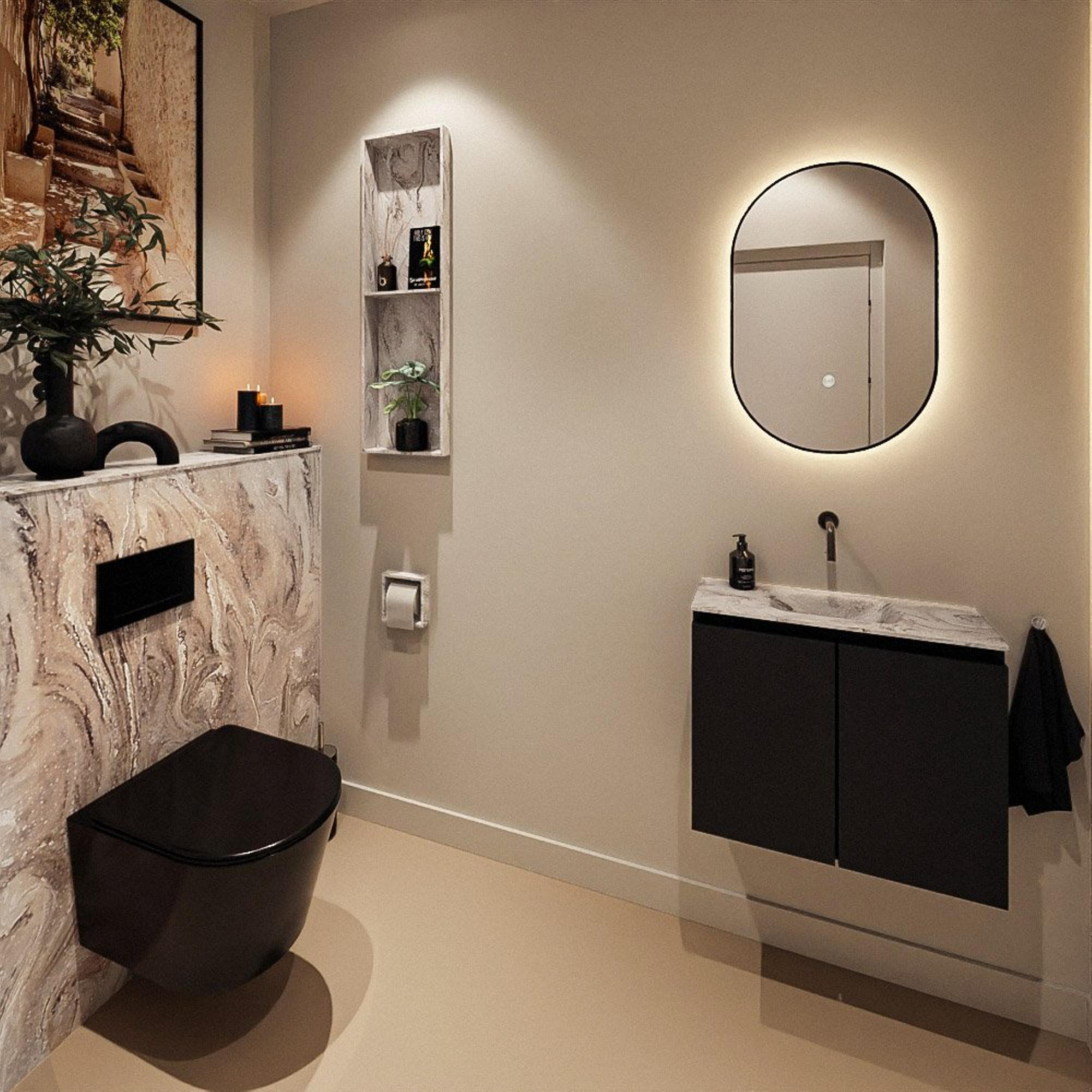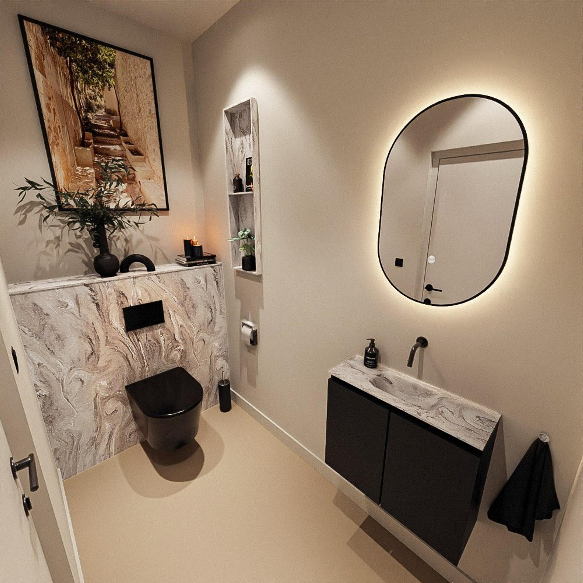 MONDIAZ TURE-DLUX 60cm toiletmeubel Urban. EDEN wastafel Glace positie midden. Zonder kraangat.