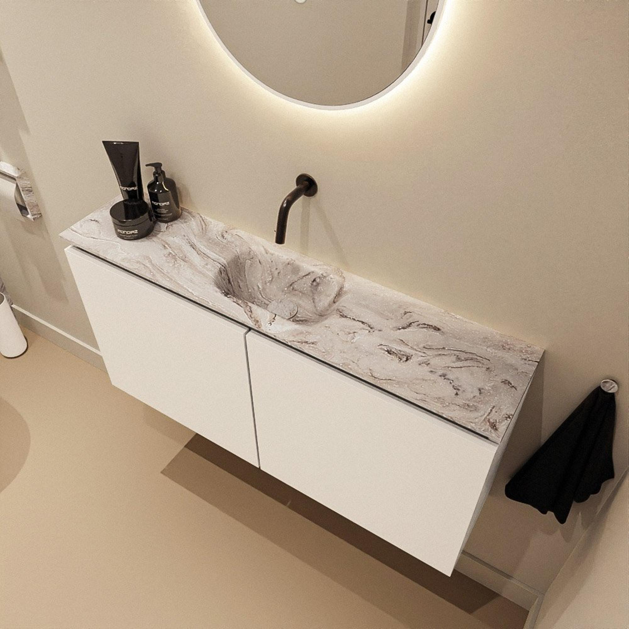 MONDIAZ TURE-DLUX 100cm toiletmeubel Talc. EDEN wastafel Glace positie midden. Zonder kraangat.