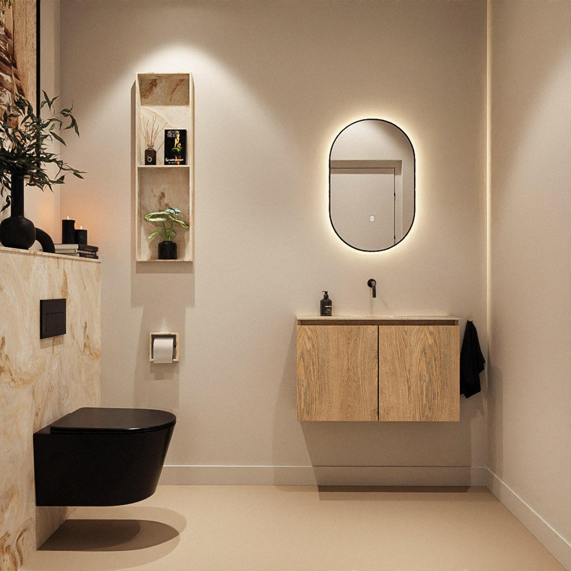 MONDIAZ TURE-DLUX 80cm toiletmeubel Washed Oak. EDEN wastafel Frappe positie midden. Zonder kraangat.