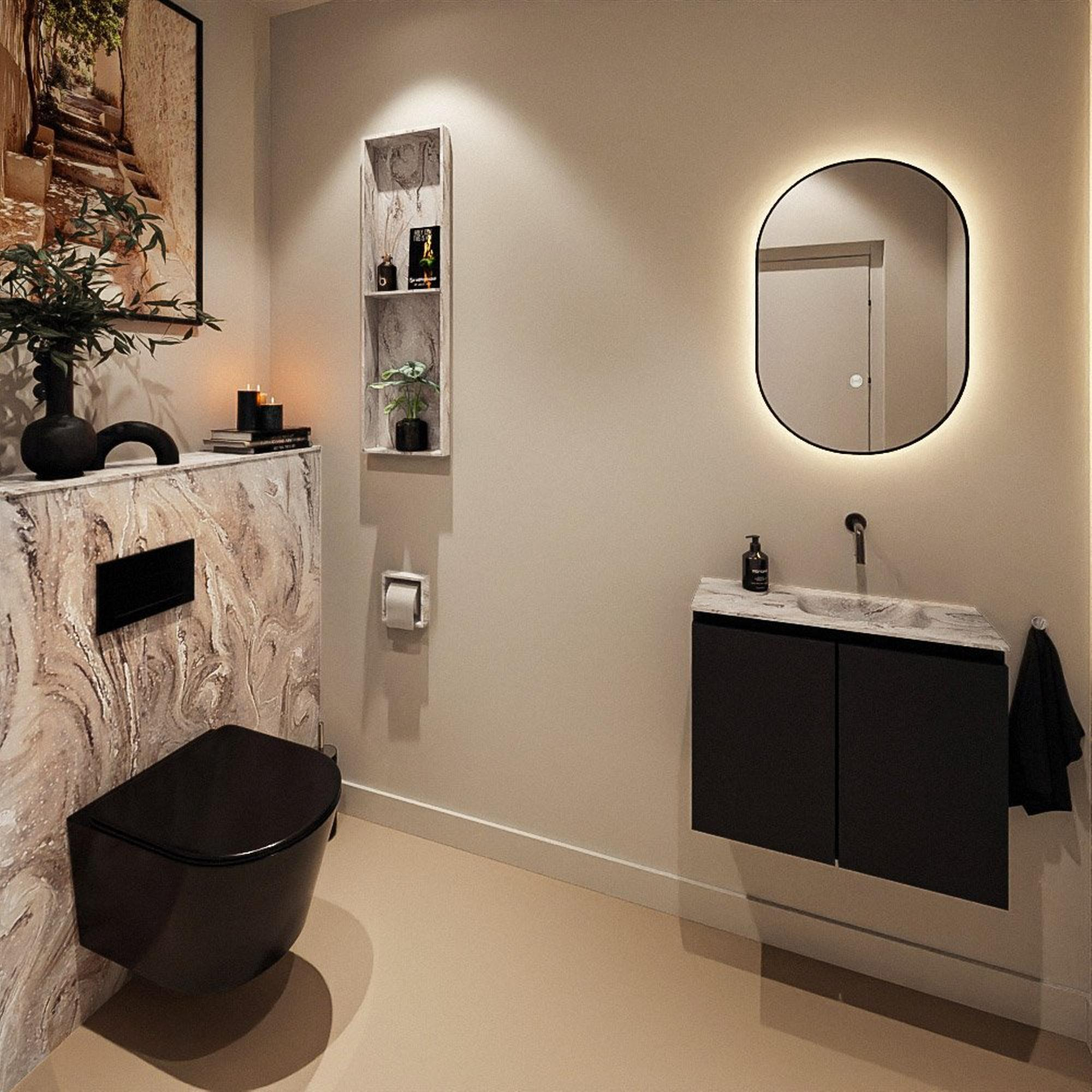 MONDIAZ TURE-DLUX 60cm toiletmeubel Urban. EDEN wastafel Glace positie rechts. Zonder kraangat.