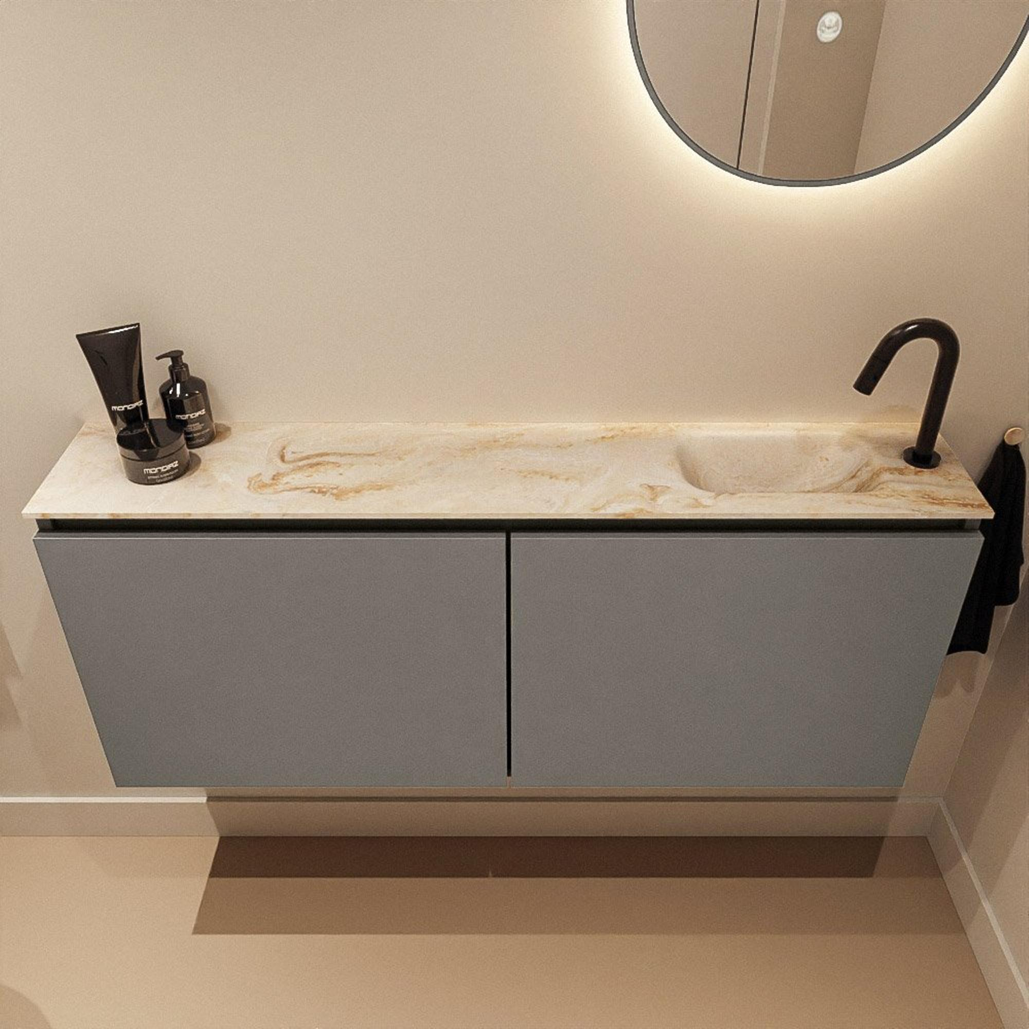 MONDIAZ TURE-DLUX 120cm toiletmeubel Smoke. EDEN wastafel Frappe positie rechts. Met 1 kraangat.