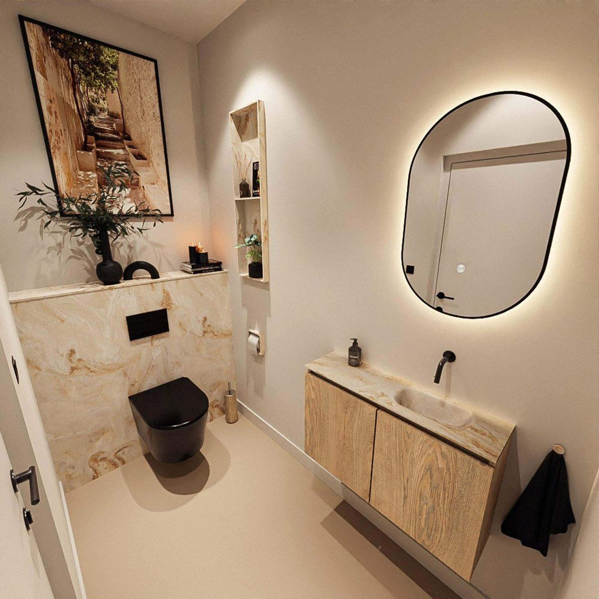 MONDIAZ TURE-DLUX 80cm toiletmeubel Washed Oak. EDEN wastafel Frappe positie rechts. Zonder kraangat.