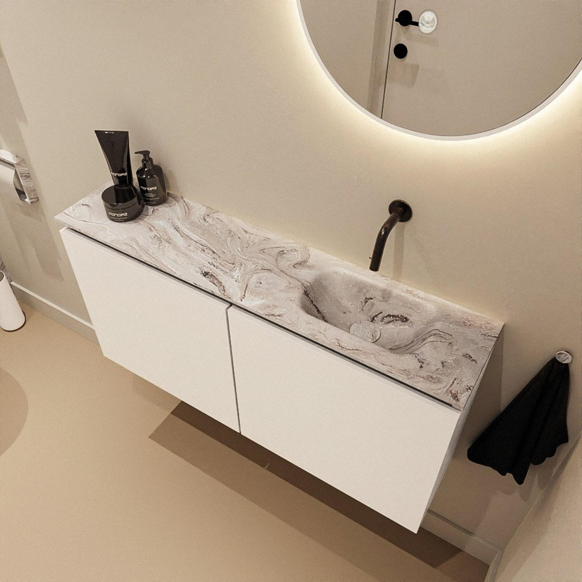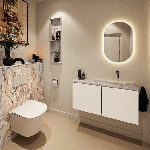 MONDIAZ TURE-DLUX 100cm toiletmeubel Talc. EDEN wastafel Glace positie rechts. Zonder kraangat.