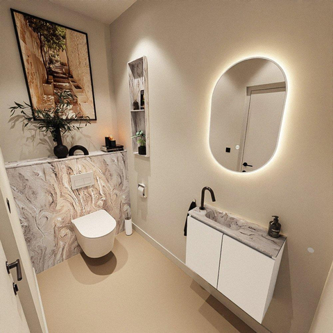 MONDIAZ TURE-DLUX 60cm toiletmeubel Talc. EDEN wastafel Glace positie links. Met 1 kraangat.