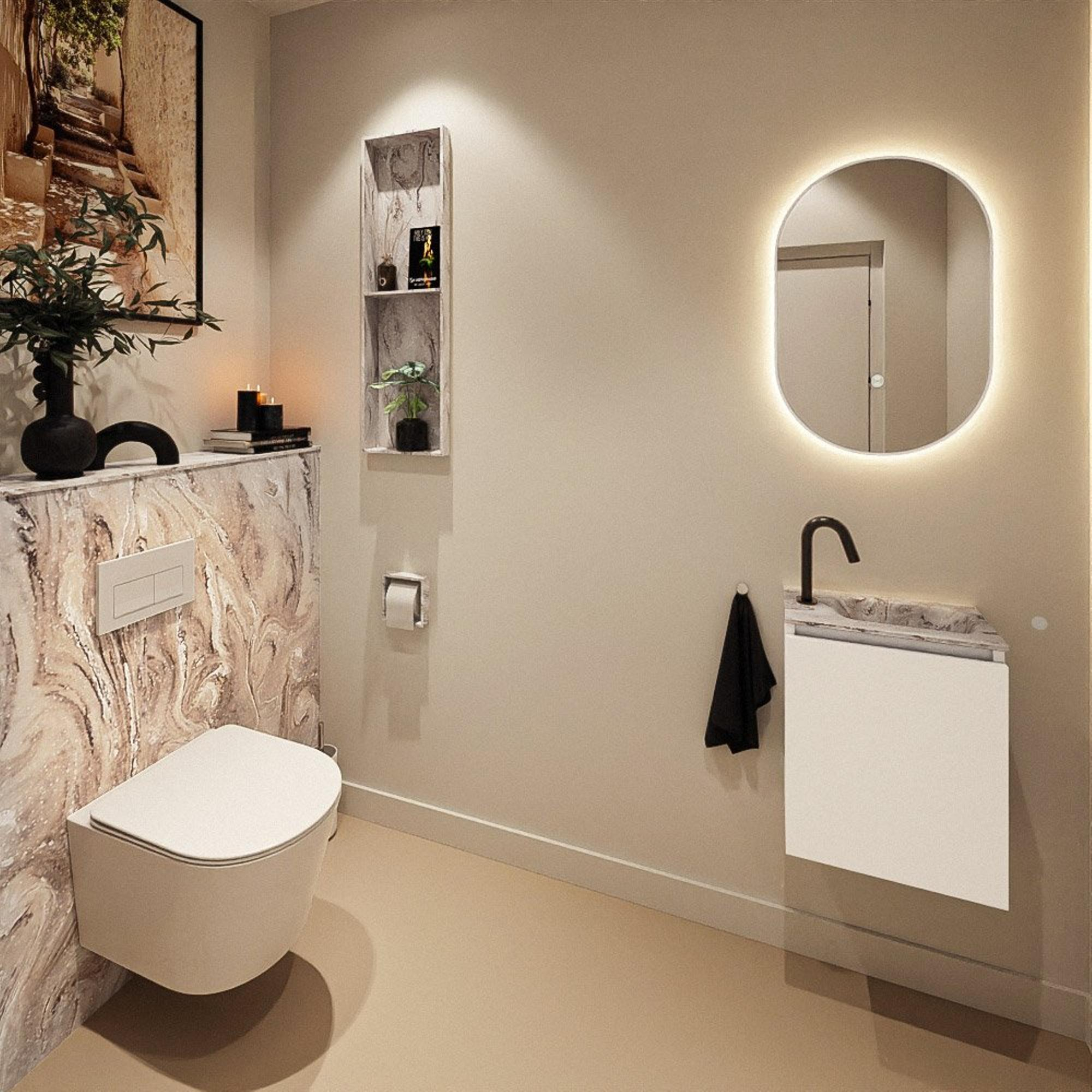 MONDIAZ TURE-DLUX 40cm toiletmeubel Talc. EDEN wastafel Glace positie rechts. Met 1 kraangat.