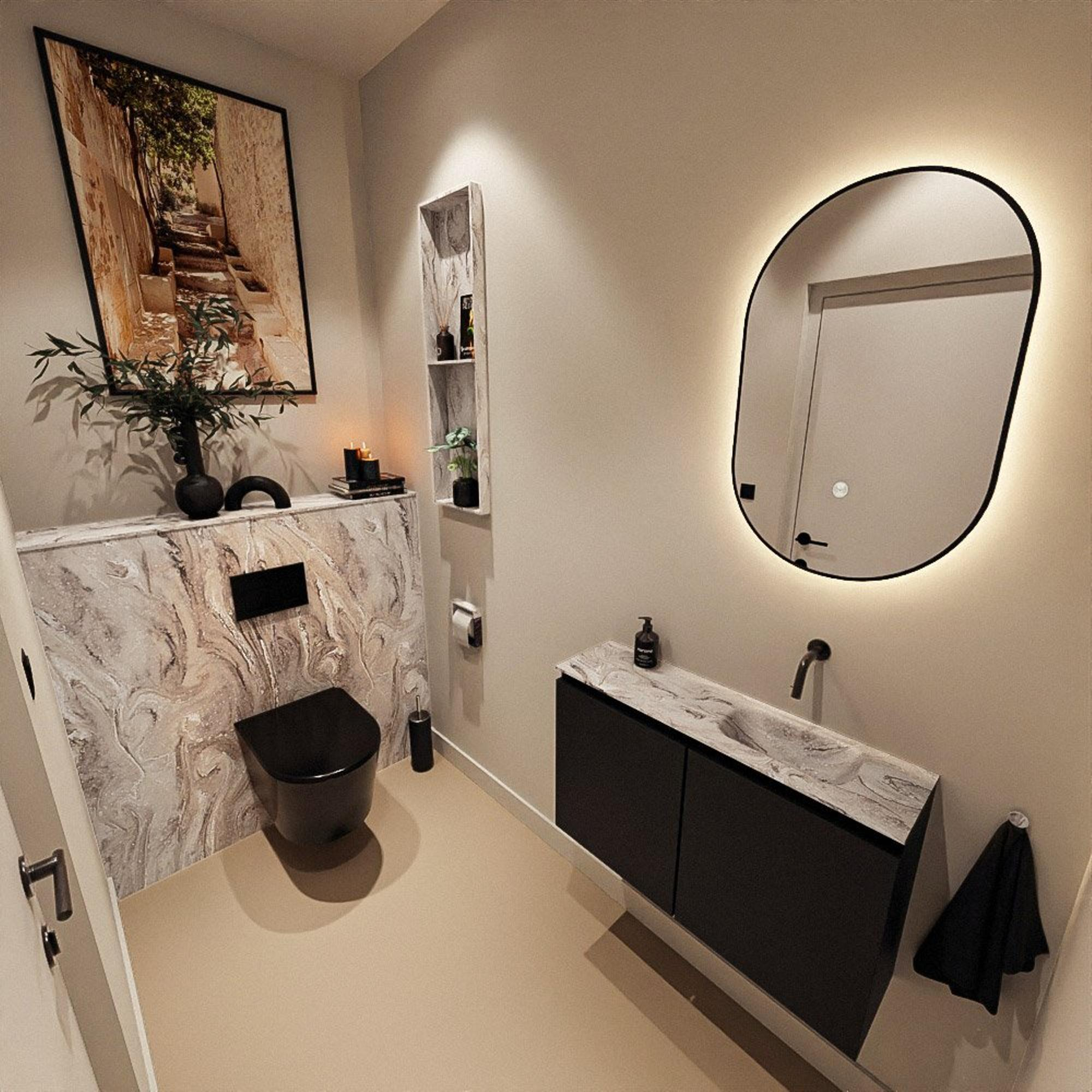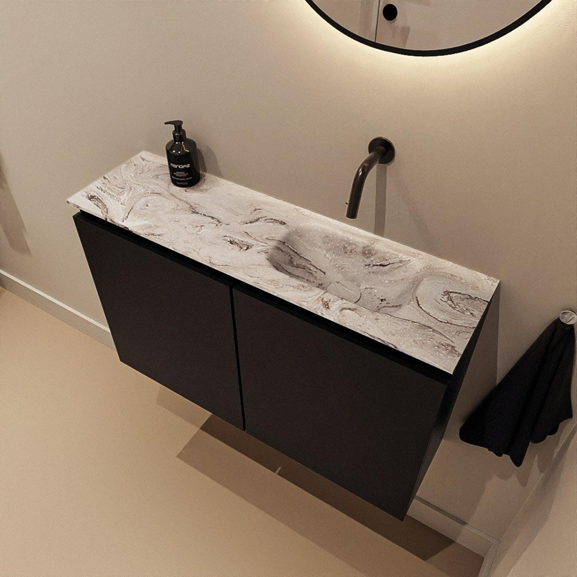 MONDIAZ TURE-DLUX 80cm toiletmeubel Urban. EDEN wastafel Glace positie rechts. Zonder kraangat.
