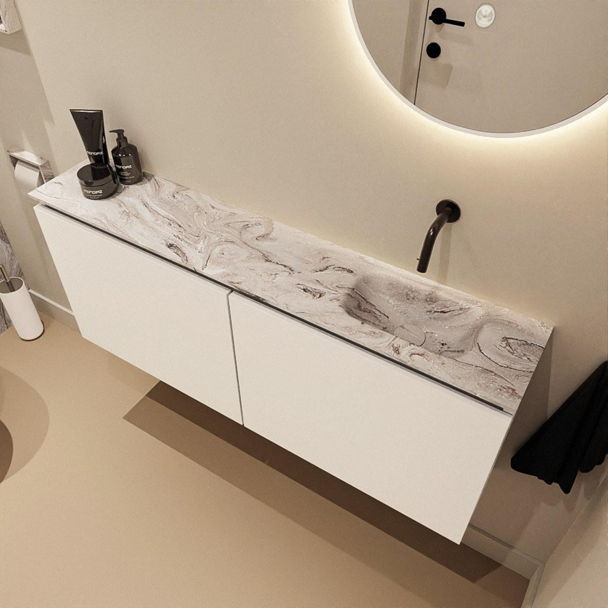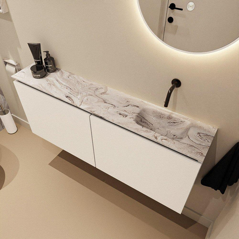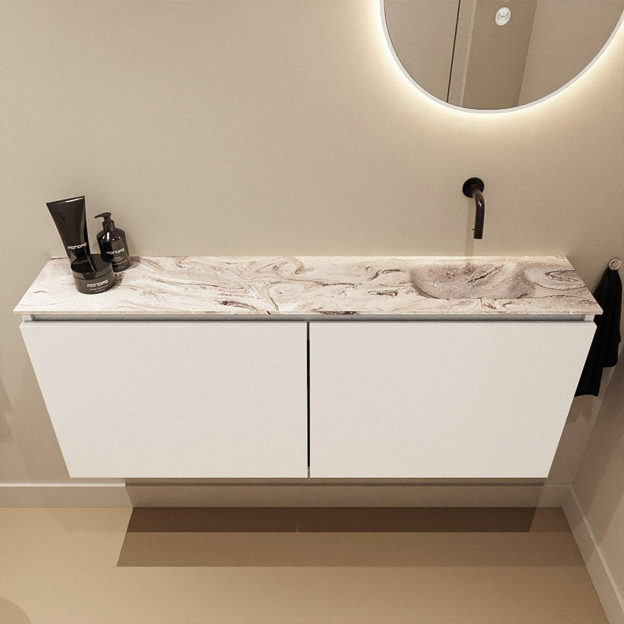 MONDIAZ TURE-DLUX 120cm toiletmeubel Talc. EDEN wastafel Glace positie rechts. Zonder kraangat.