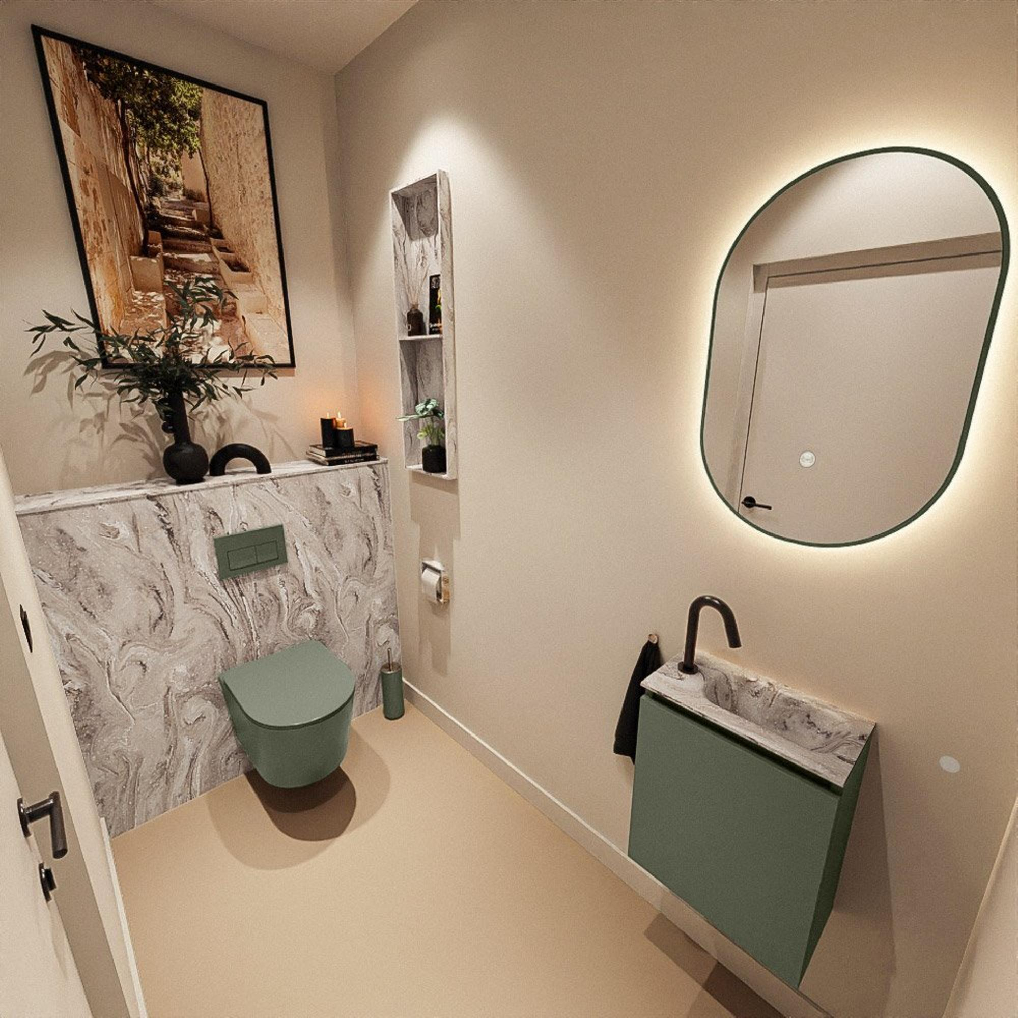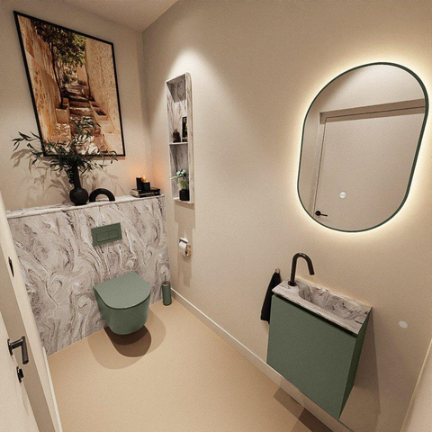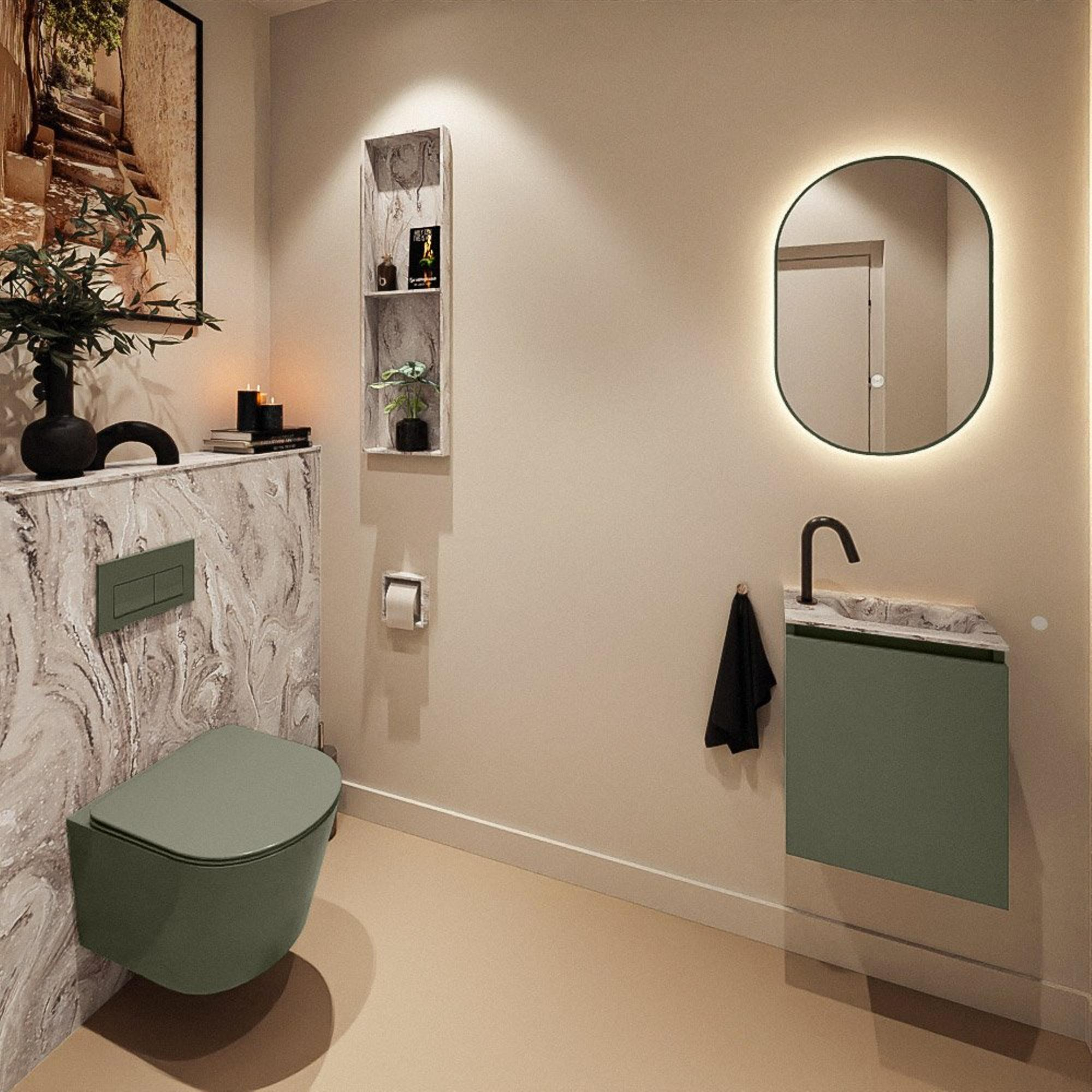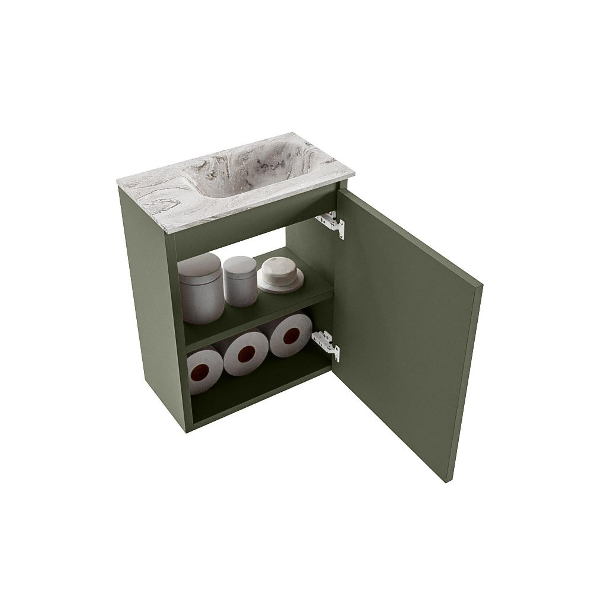 MONDIAZ TURE-DLUX 40cm toiletmeubel Army. EDEN wastafel Glace positie rechts. Met 1 kraangat.