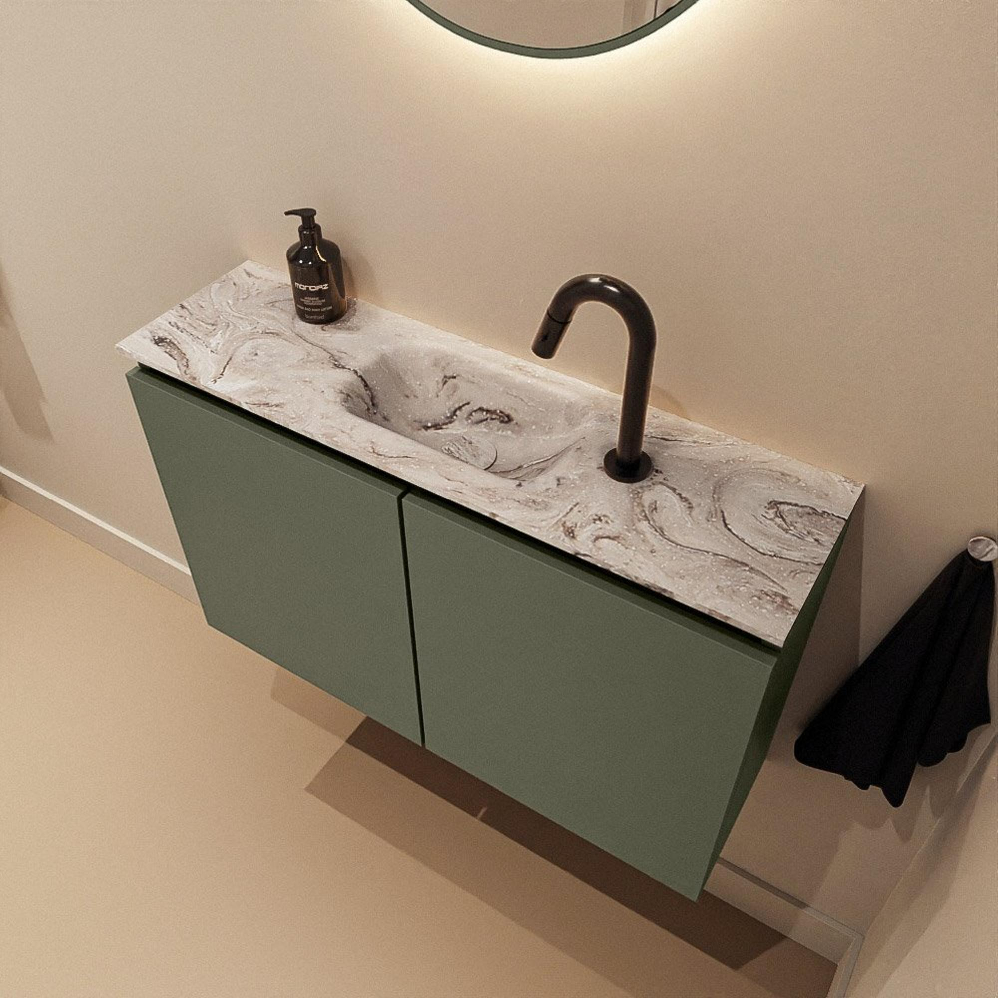 MONDIAZ TURE-DLUX 80cm toiletmeubel Army. EDEN wastafel Glace positie midden. Met 1 kraangat.