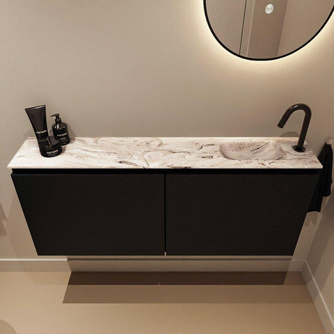 MONDIAZ TURE-DLUX 120cm toiletmeubel Urban. EDEN wastafel Glace positie rechts. Met 1 kraangat.