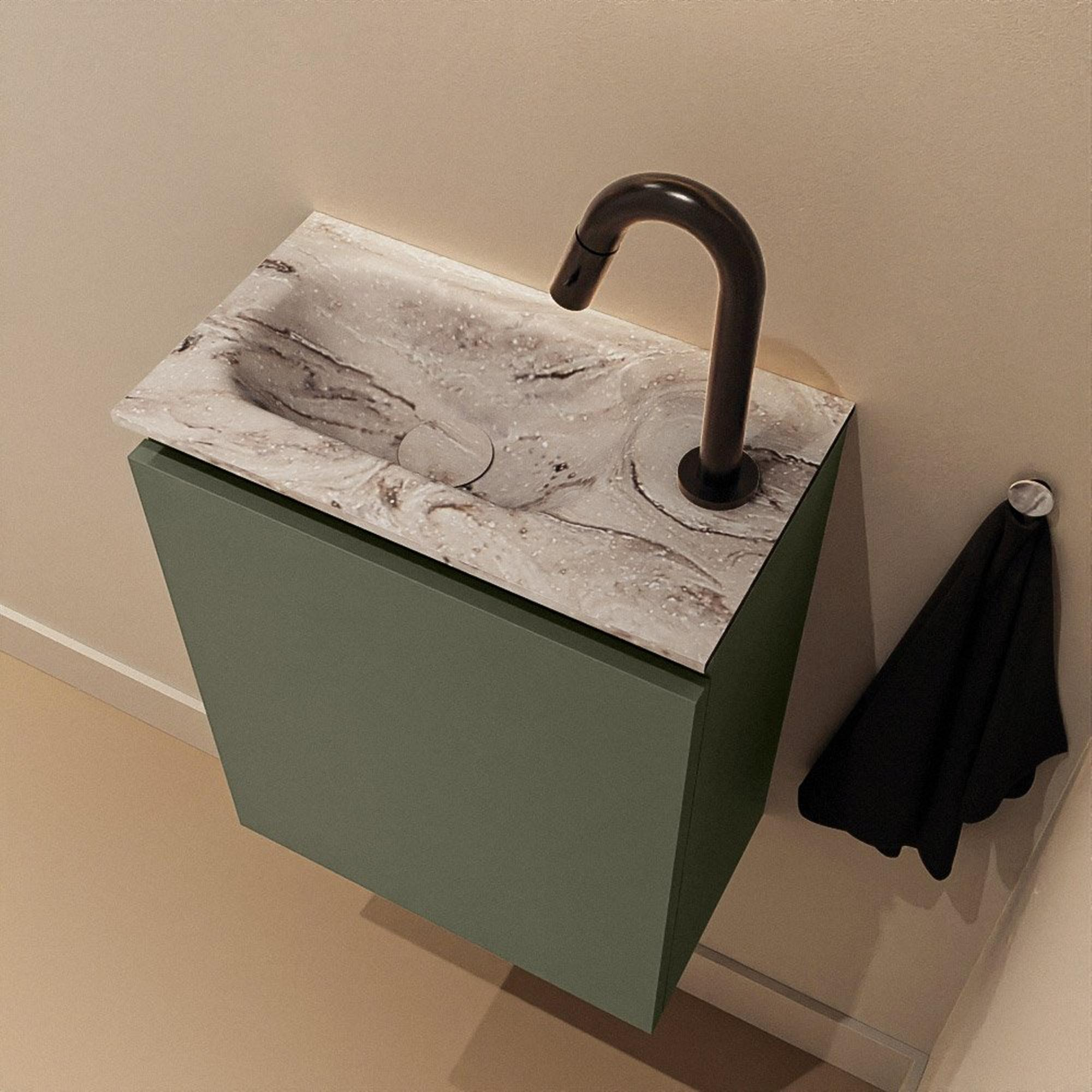 MONDIAZ TURE-DLUX 40cm toiletmeubel Army. EDEN wastafel Glace positie links. Met 1 kraangat.
