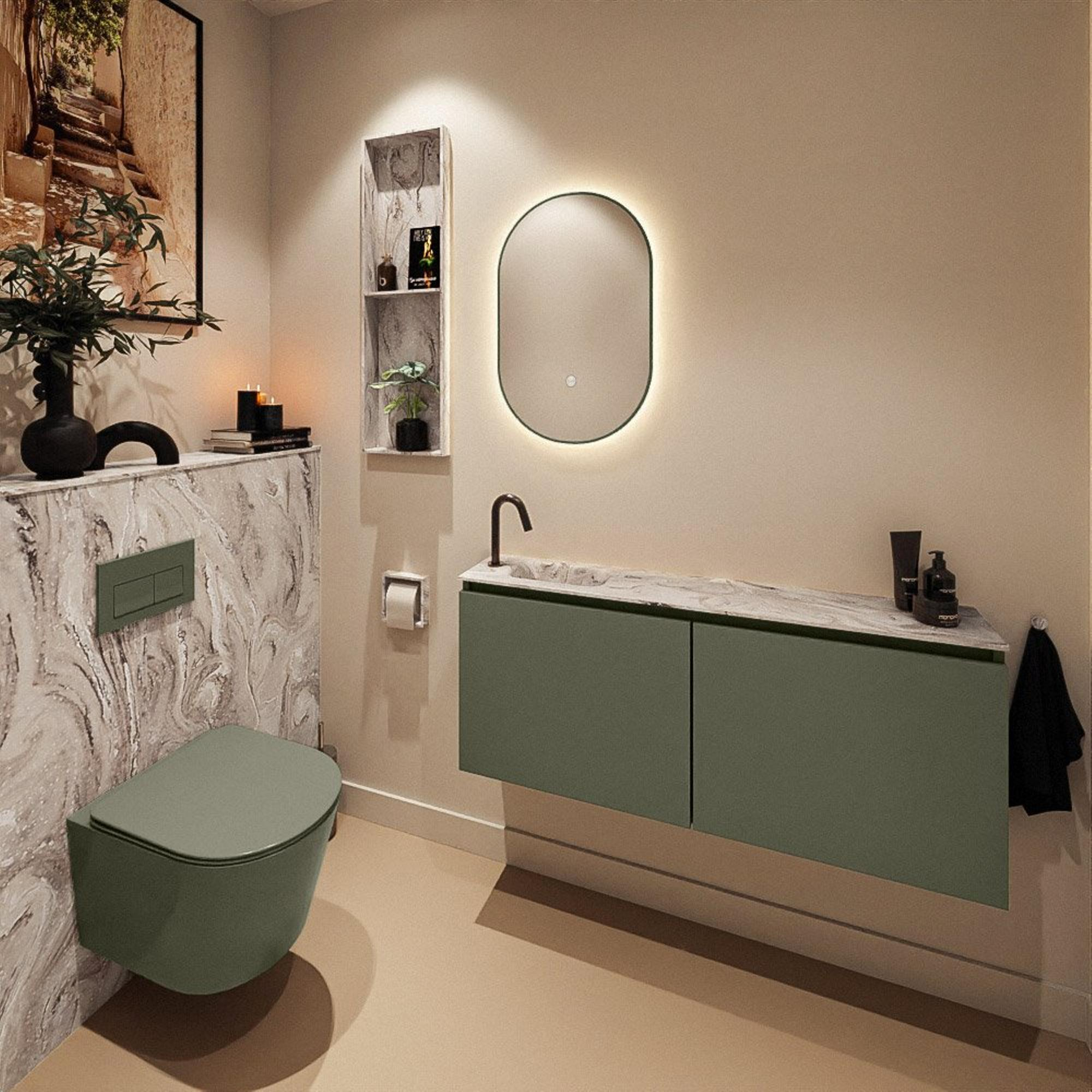 MONDIAZ TURE-DLUX 120cm toiletmeubel Army. EDEN wastafel Glace positie links. Met 1 kraangat.
