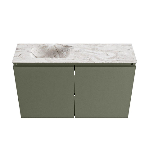 MONDIAZ TURE-DLUX 80cm toiletmeubel Army. EDEN wastafel Glace positie links. Met 1 kraangat.