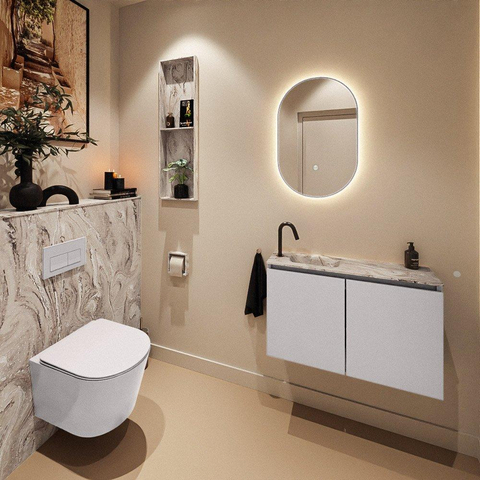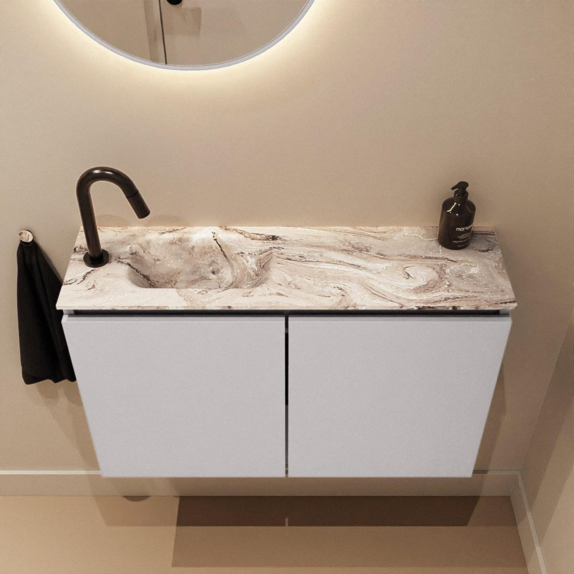 MONDIAZ TURE-DLUX 80cm toiletmeubel Cale. EDEN wastafel Glace positie links. Met 1 kraangat.
