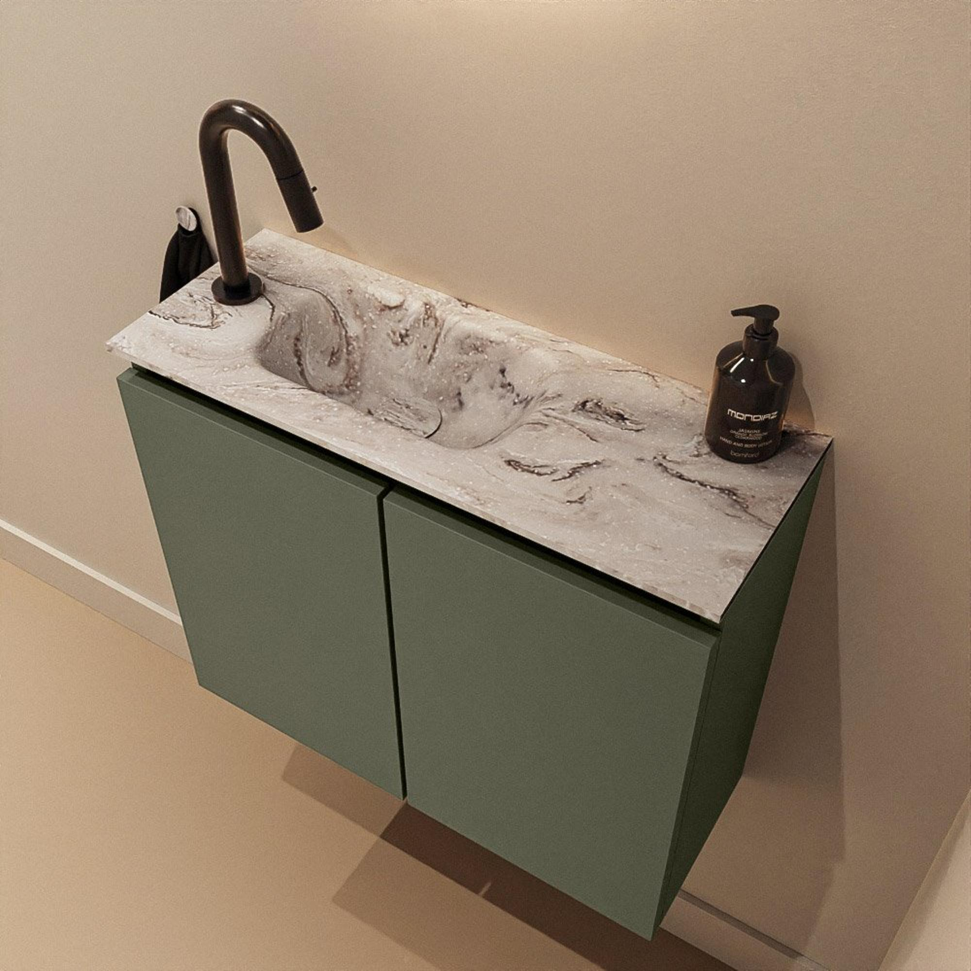 MONDIAZ TURE-DLUX 60cm toiletmeubel Army. EDEN wastafel Glace positie links. Met 1 kraangat.