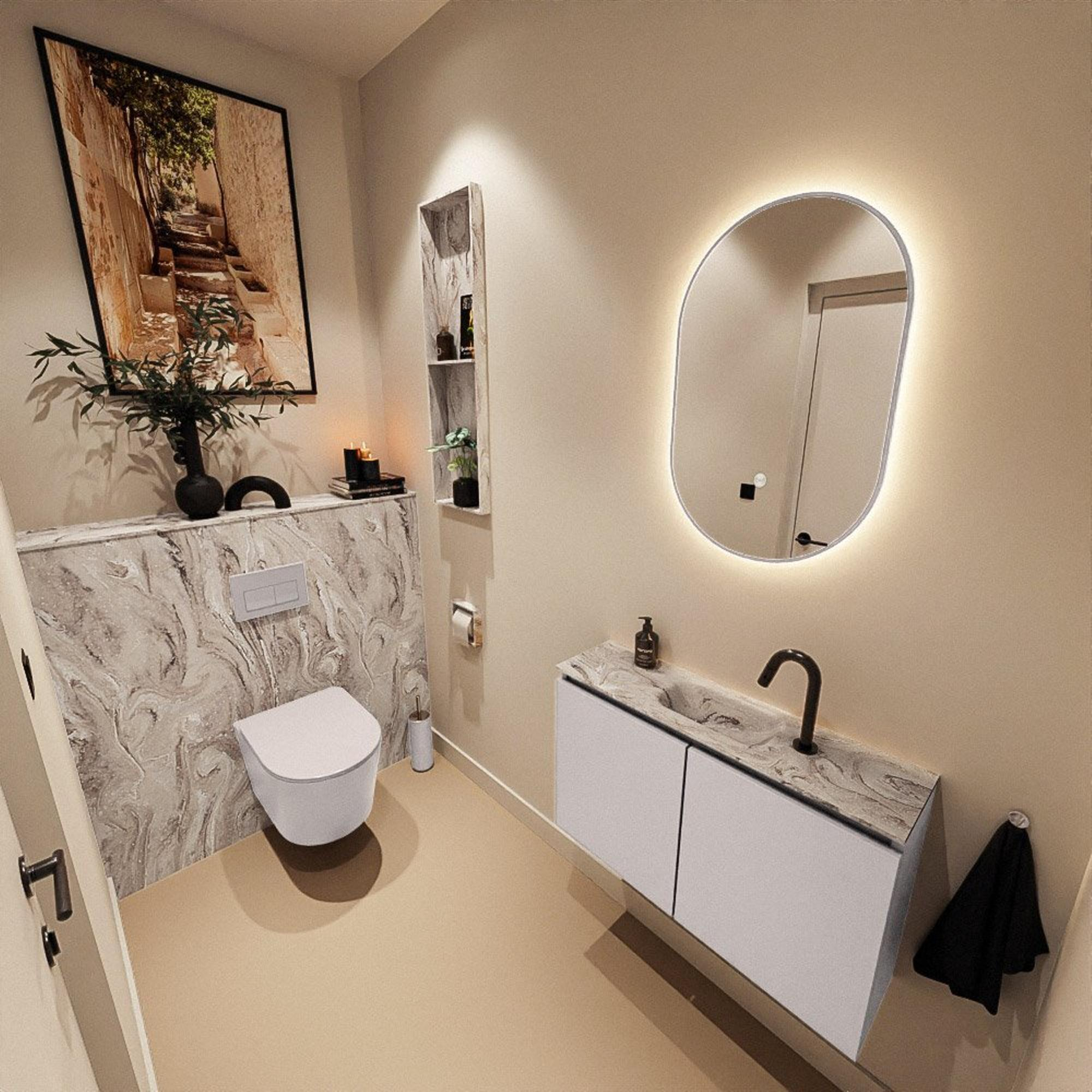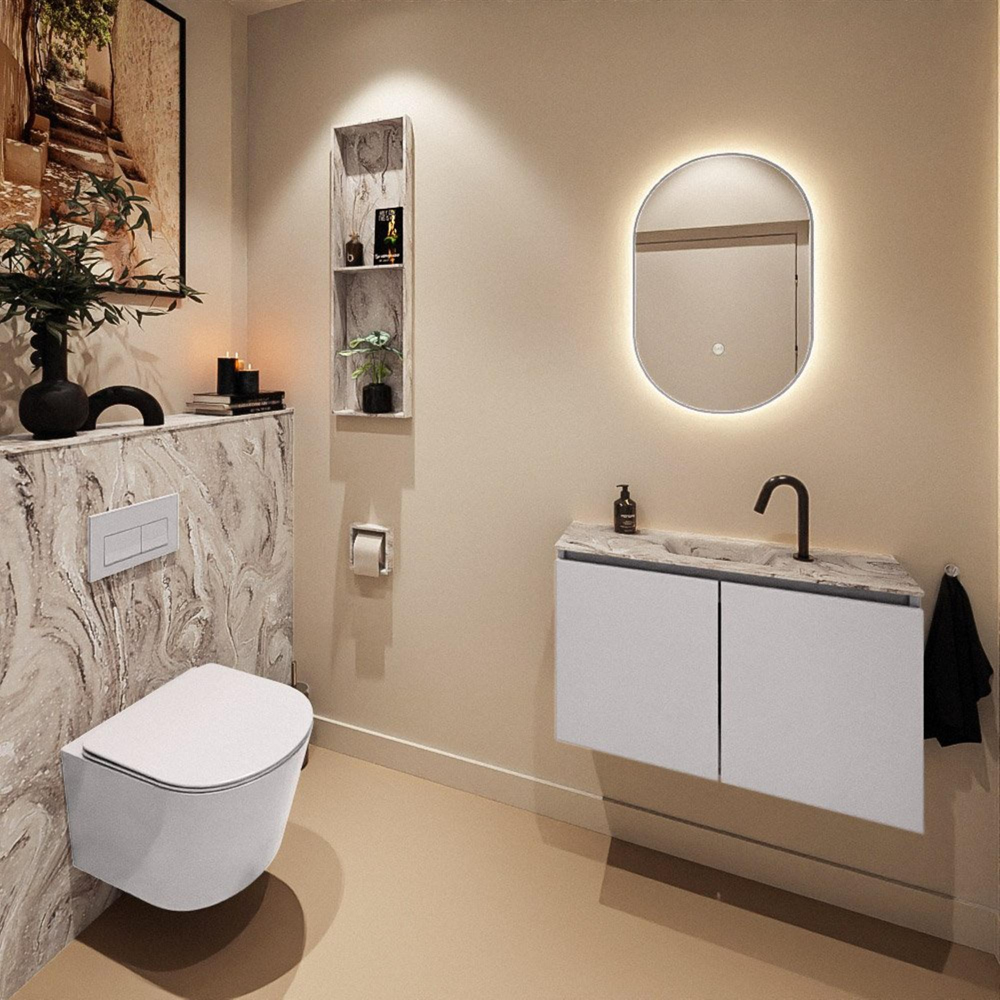 MONDIAZ TURE-DLUX 80cm toiletmeubel Cale. EDEN wastafel Glace positie midden. Met 1 kraangat.