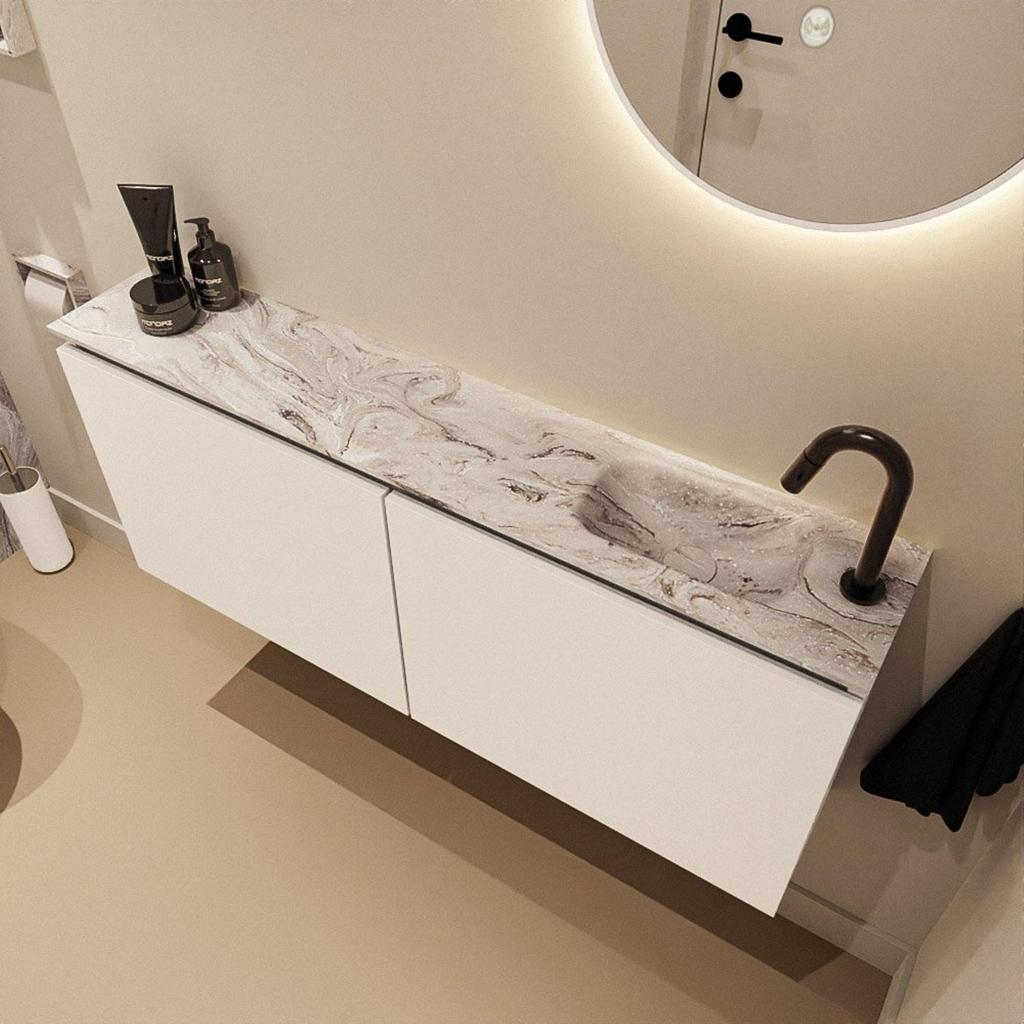 MONDIAZ TURE-DLUX 120cm toiletmeubel Talc. EDEN wastafel Glace positie rechts. Met 1 kraangat.