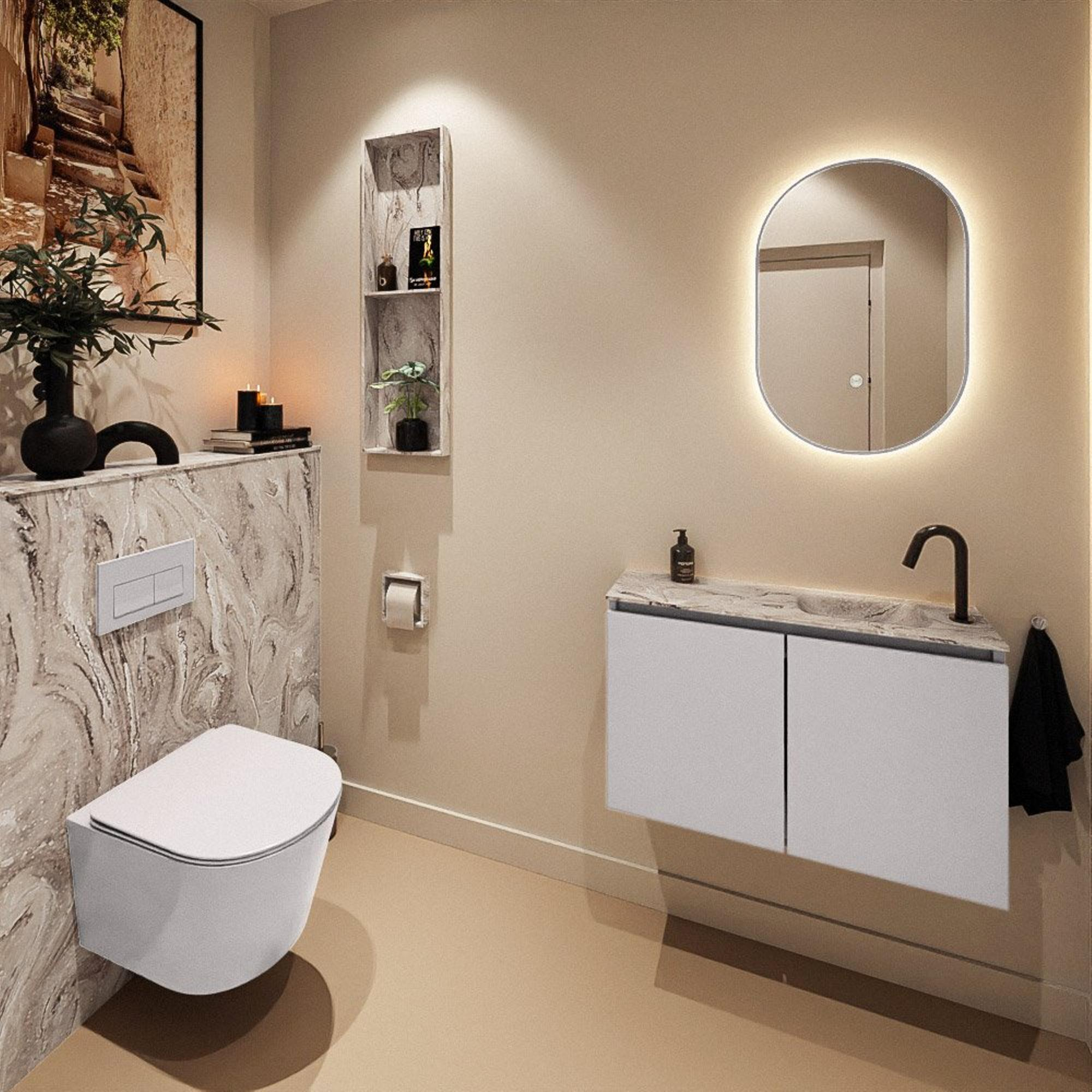 MONDIAZ TURE-DLUX 80cm toiletmeubel Cale. EDEN wastafel Glace positie rechts. Met 1 kraangat.
