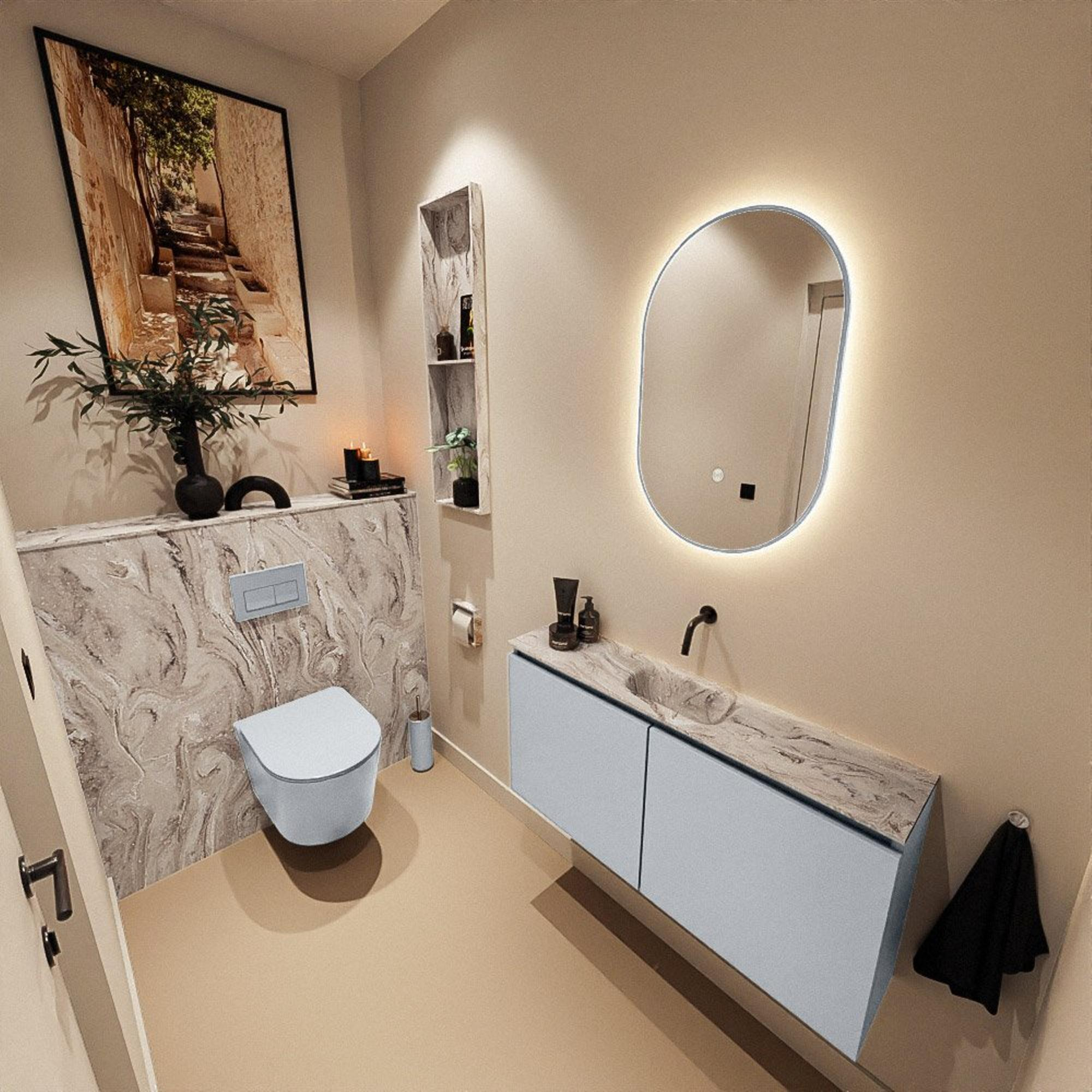 MONDIAZ TURE-DLUX 100cm toiletmeubel Clay. EDEN wastafel Glace positie midden. Zonder kraangat.