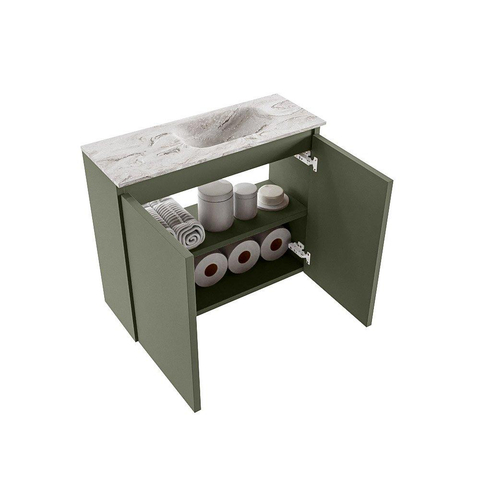 MONDIAZ TURE-DLUX 60cm toiletmeubel Army. EDEN wastafel Glace positie rechts. Met 1 kraangat.