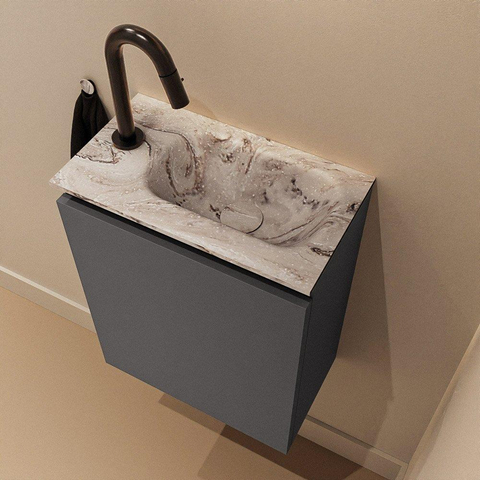 MONDIAZ TURE-DLUX 40cm toiletmeubel Dark Grey. EDEN wastafel Glace positie rechts. Met 1 kraangat.