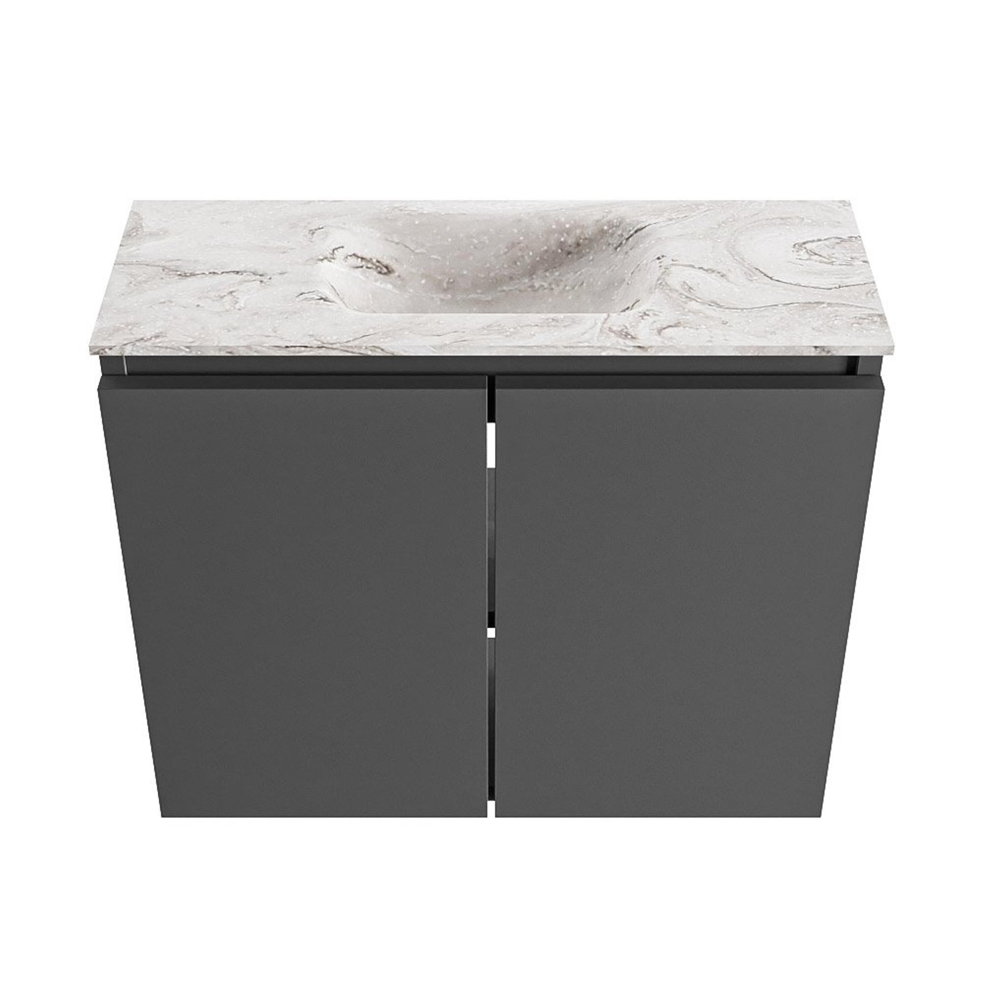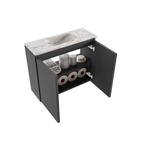 MONDIAZ TURE-DLUX 60cm toiletmeubel Dark Grey. EDEN wastafel Glace positie midden. Zonder kraangat.