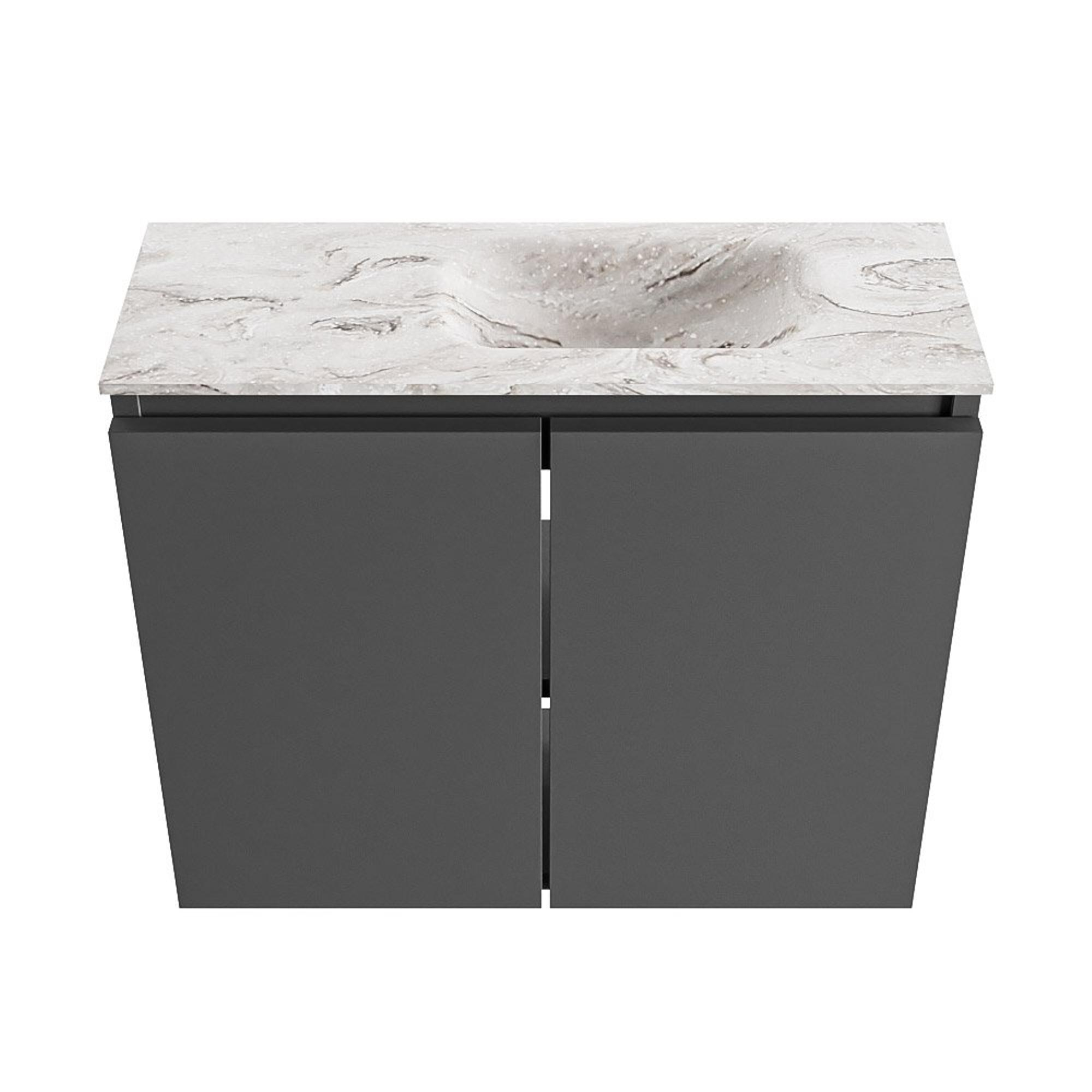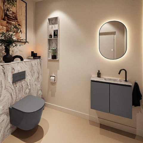 MONDIAZ TURE-DLUX 60cm toiletmeubel Dark Grey. EDEN wastafel Glace positie rechts. Met 1 kraangat.