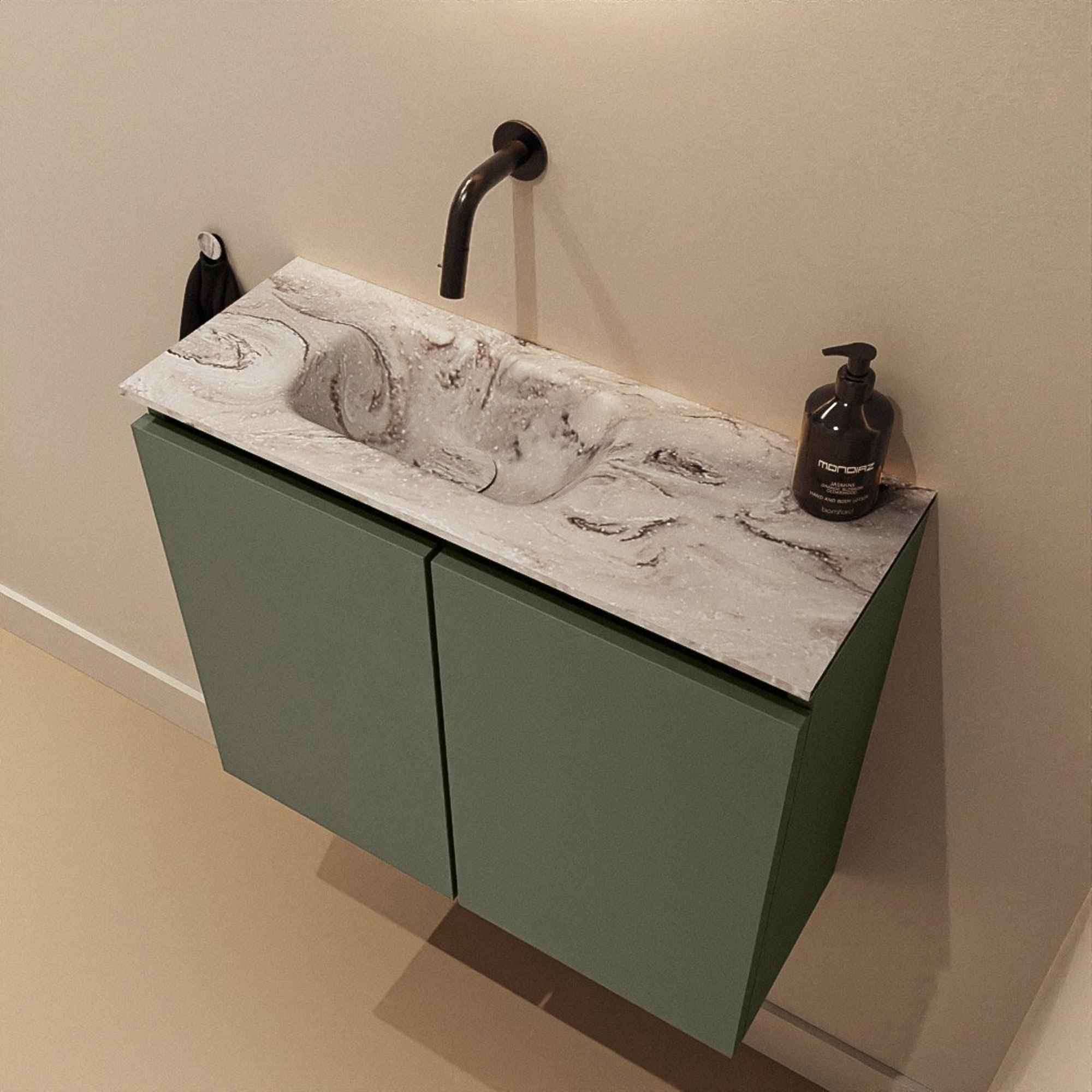 MONDIAZ TURE-DLUX 60cm toiletmeubel Army. EDEN wastafel Glace positie links. Zonder kraangat.