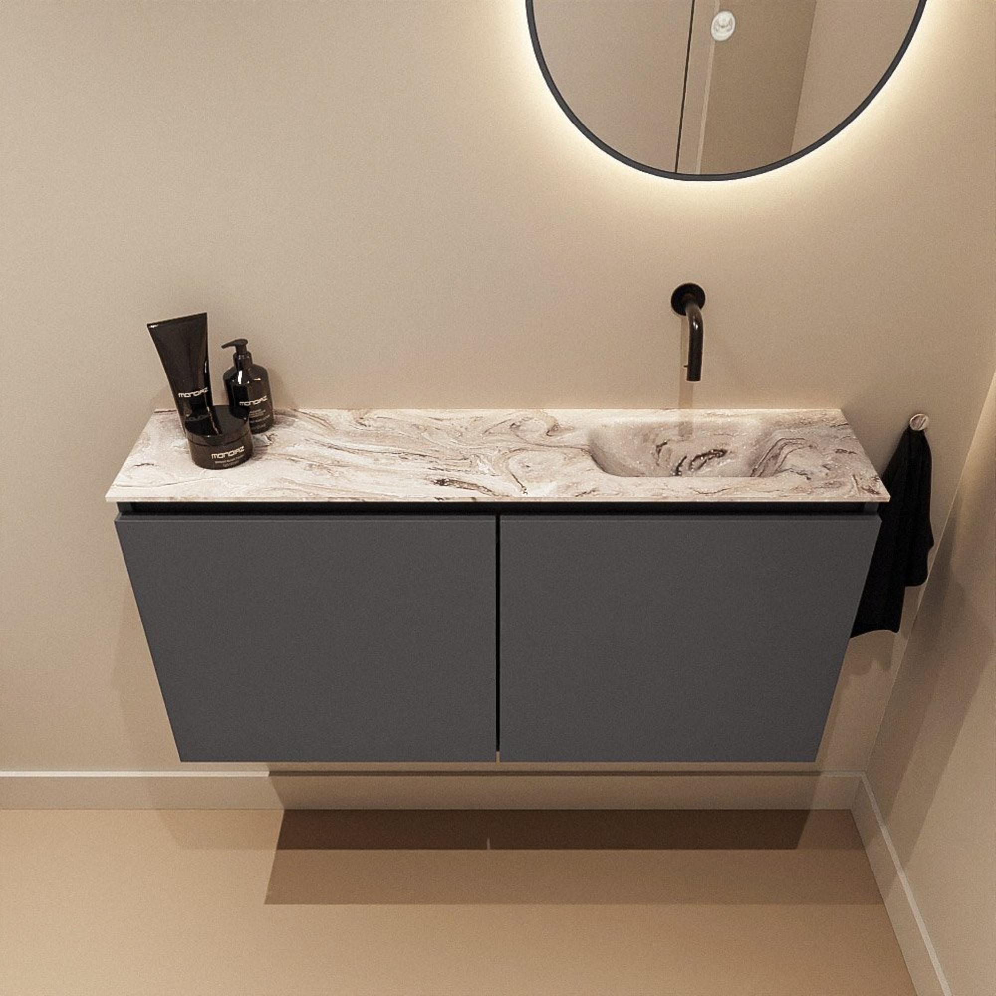 MONDIAZ TURE-DLUX 100cm toiletmeubel Dark Grey. EDEN wastafel Glace positie rechts. Zonder kraangat.