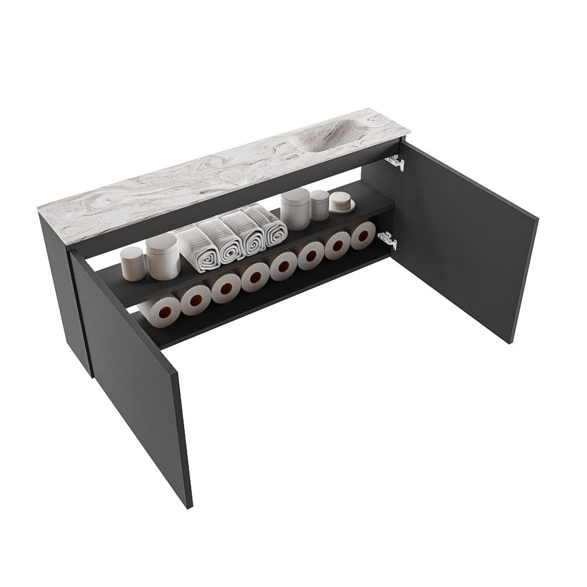 MONDIAZ TURE-DLUX 120cm toiletmeubel Dark Grey. EDEN wastafel Glace positie rechts. Met 1 kraangat.