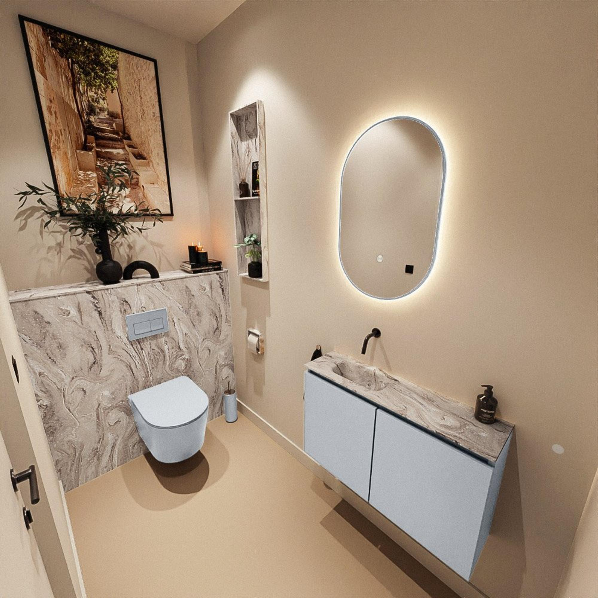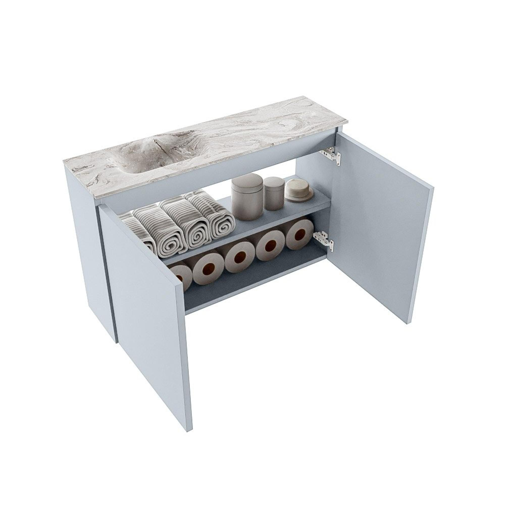 MONDIAZ TURE-DLUX 80cm toiletmeubel Clay. EDEN wastafel Glace positie links. Zonder kraangat.