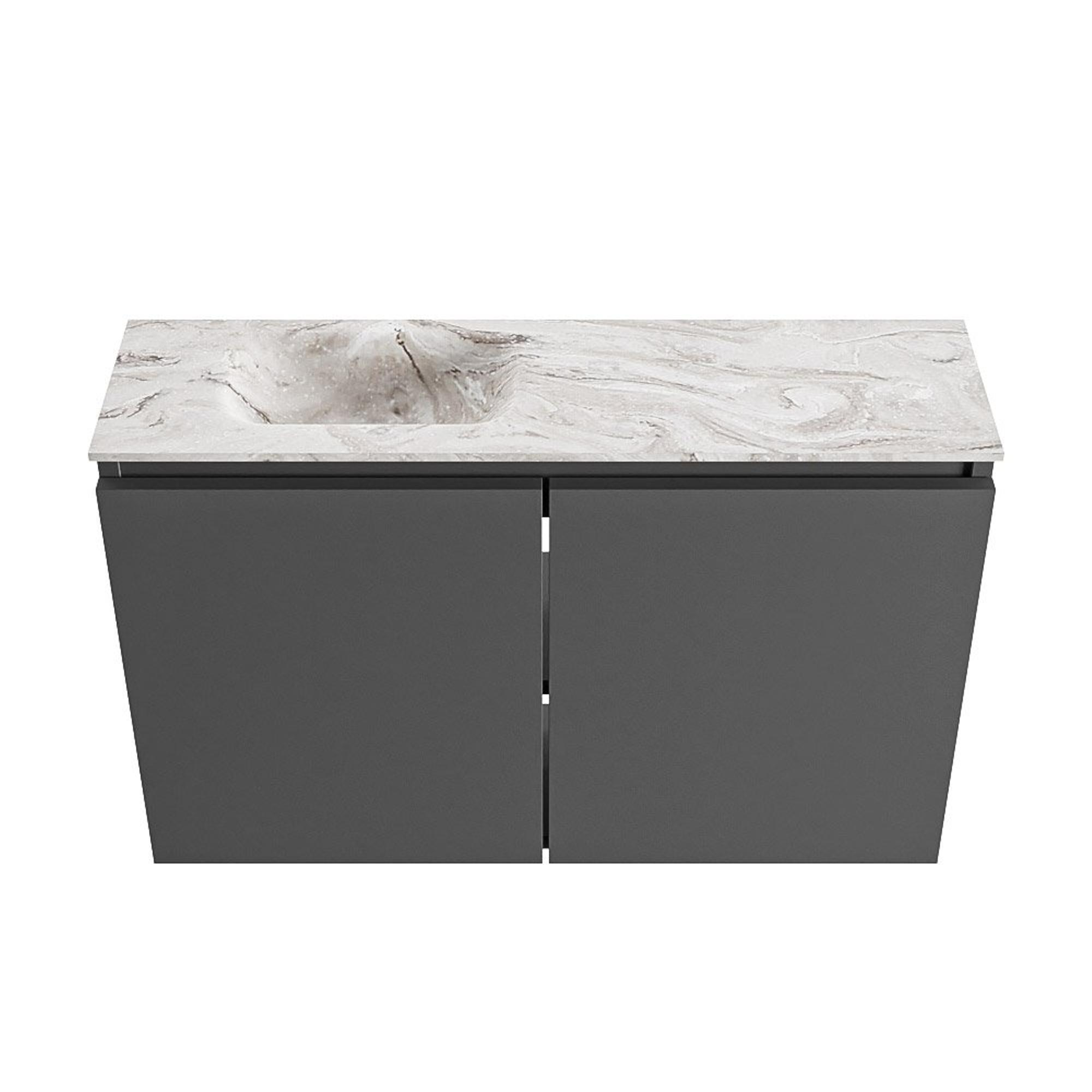 MONDIAZ TURE-DLUX 80cm toiletmeubel Dark Grey. EDEN wastafel Glace positie links. Met 1 kraangat.