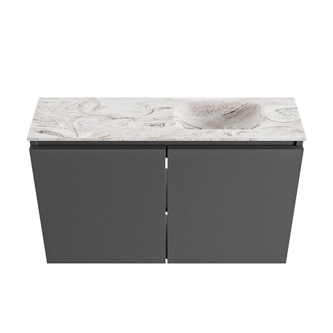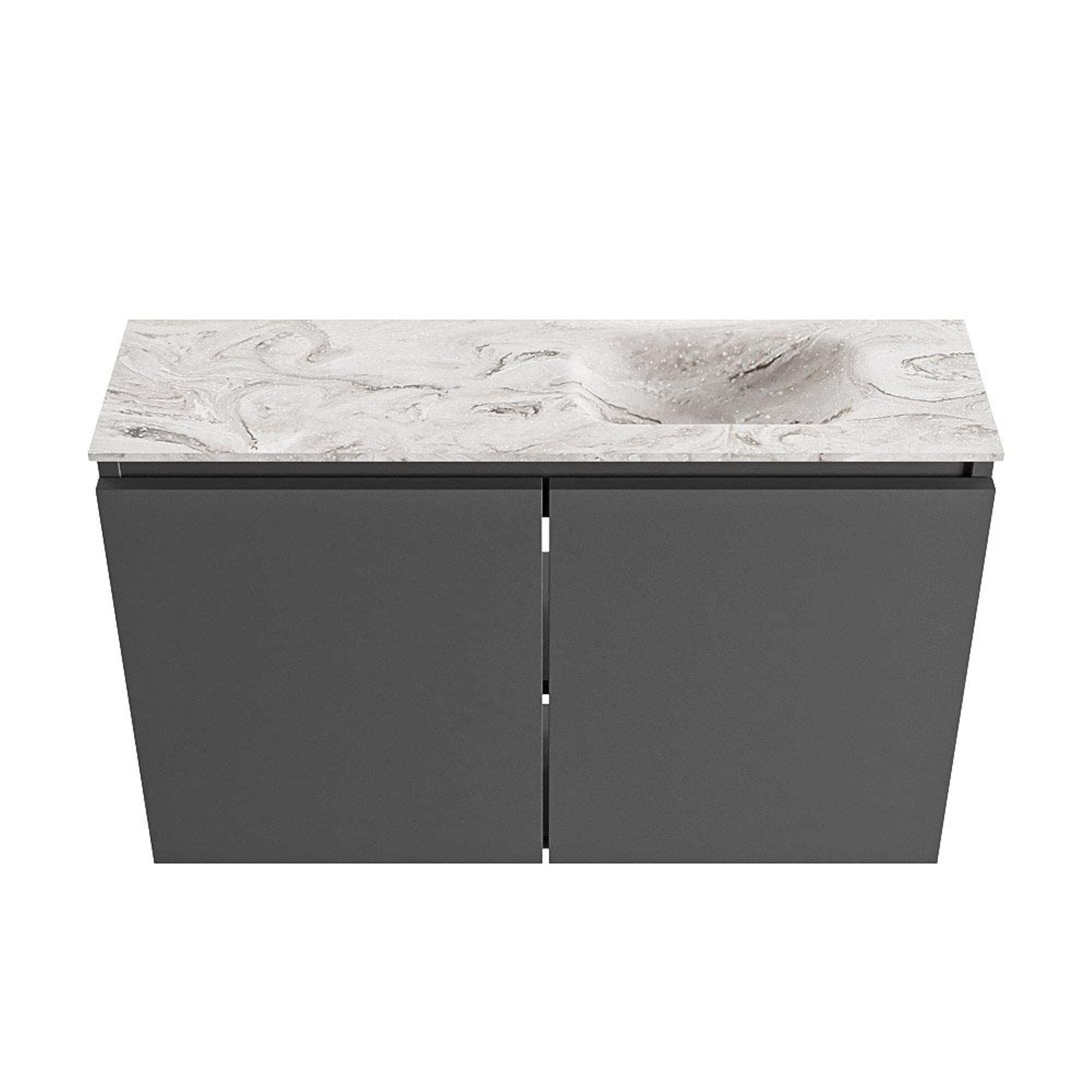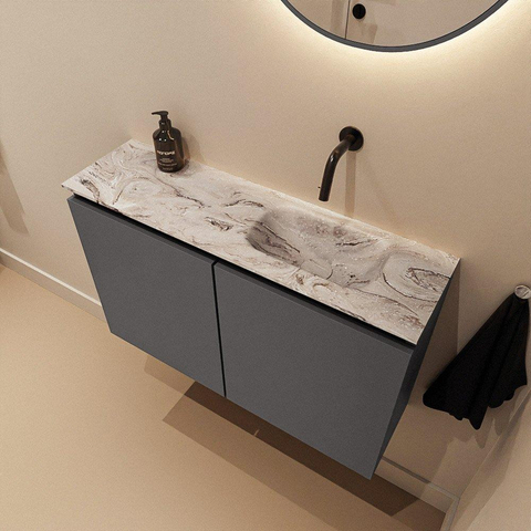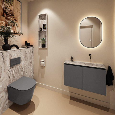 MONDIAZ TURE-DLUX 80cm toiletmeubel Dark Grey. EDEN wastafel Glace positie rechts. Zonder kraangat.