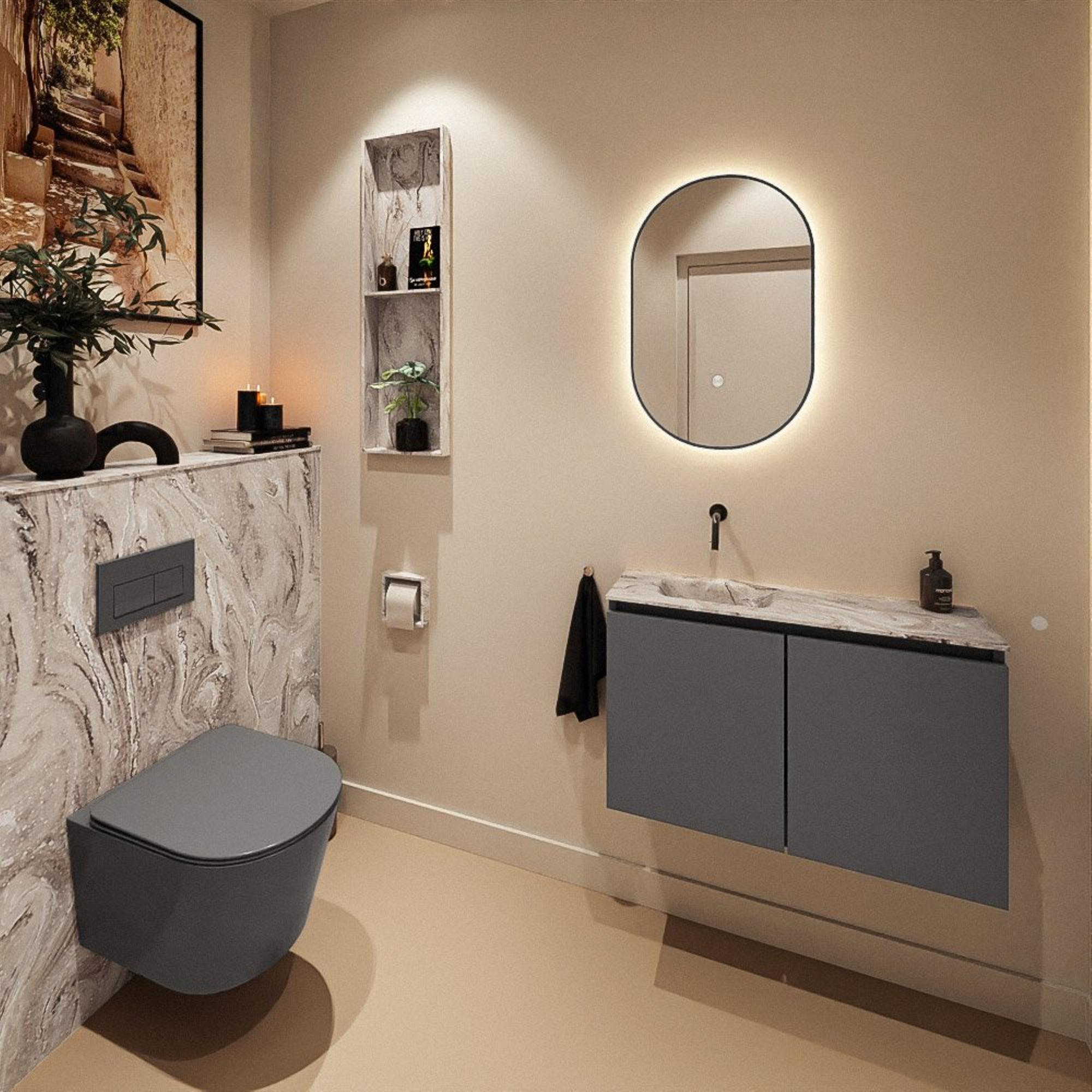 MONDIAZ TURE-DLUX 80cm toiletmeubel Dark Grey. EDEN wastafel Glace positie links. Zonder kraangat.