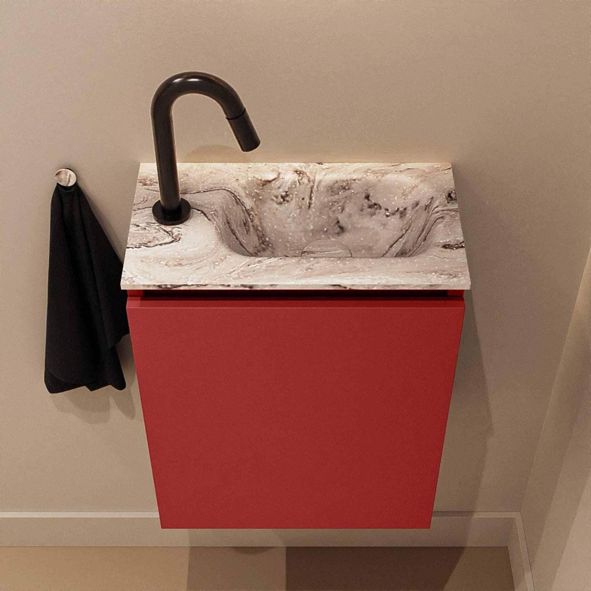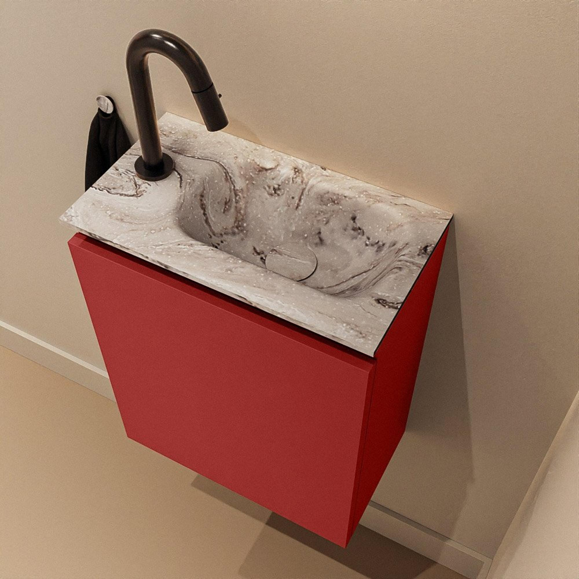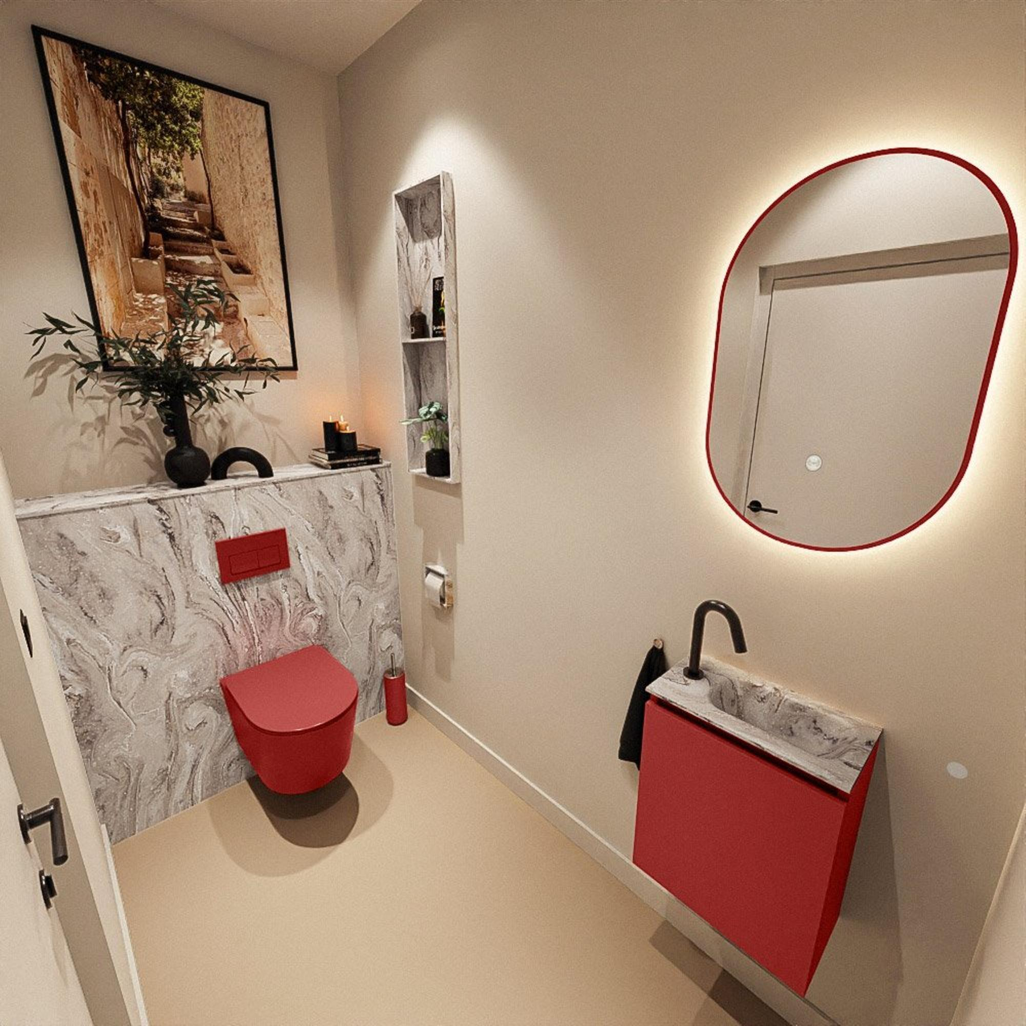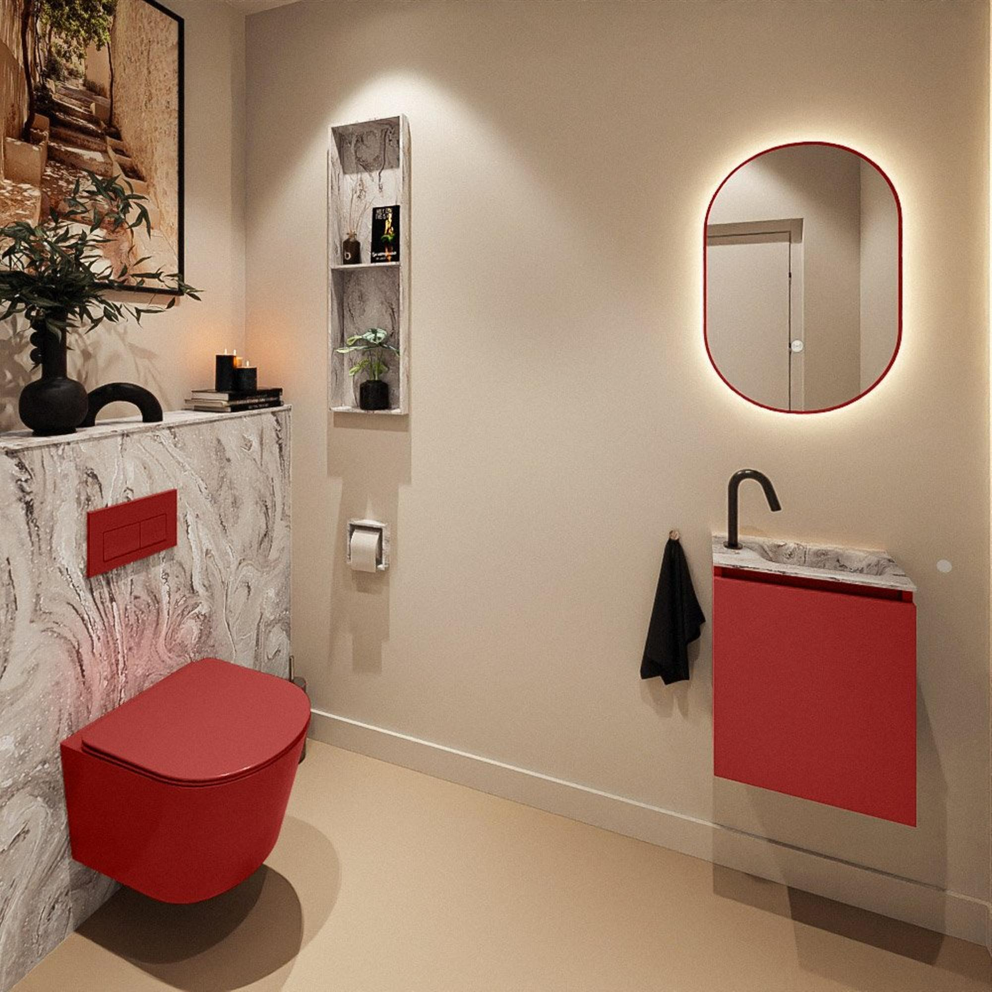 MONDIAZ TURE-DLUX 40cm toiletmeubel Fire. EDEN wastafel Glace positie rechts. Met 1 kraangat.