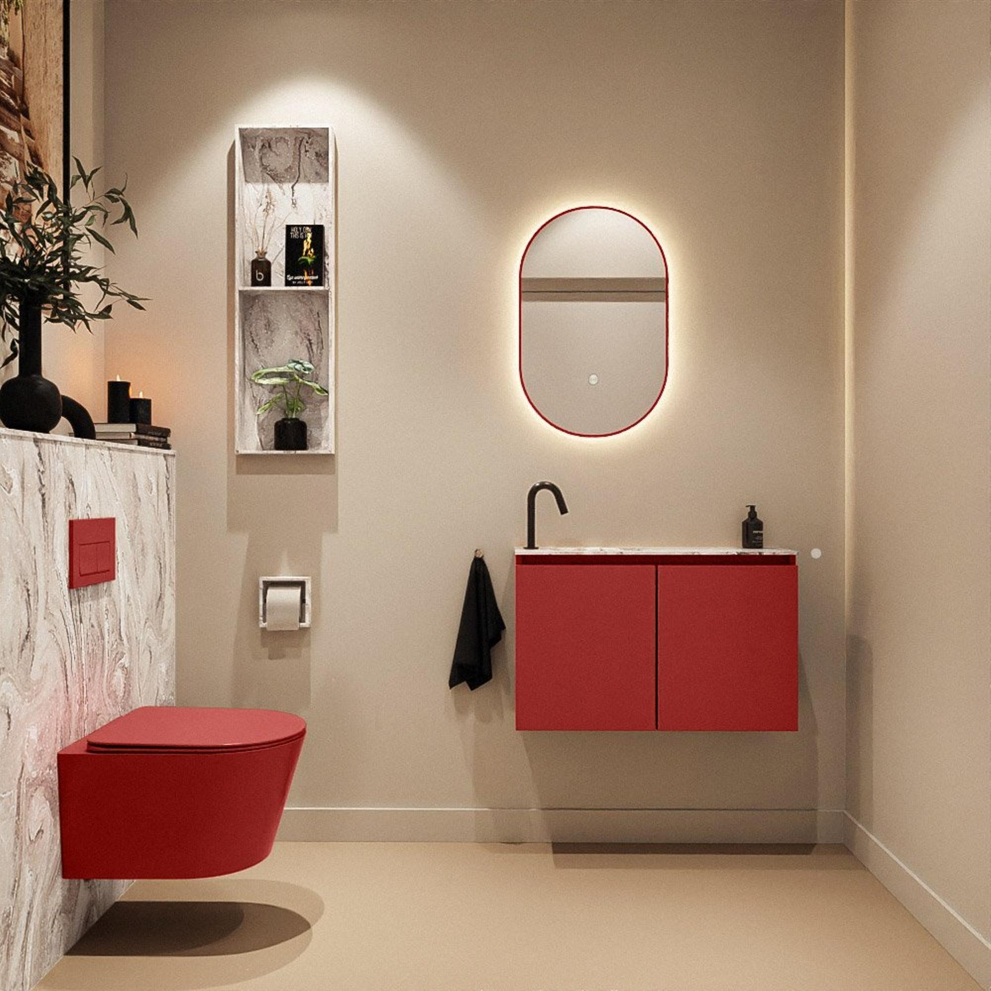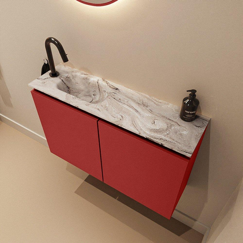 MONDIAZ TURE-DLUX 80cm toiletmeubel Fire. EDEN wastafel Glace positie links. Met 1 kraangat.